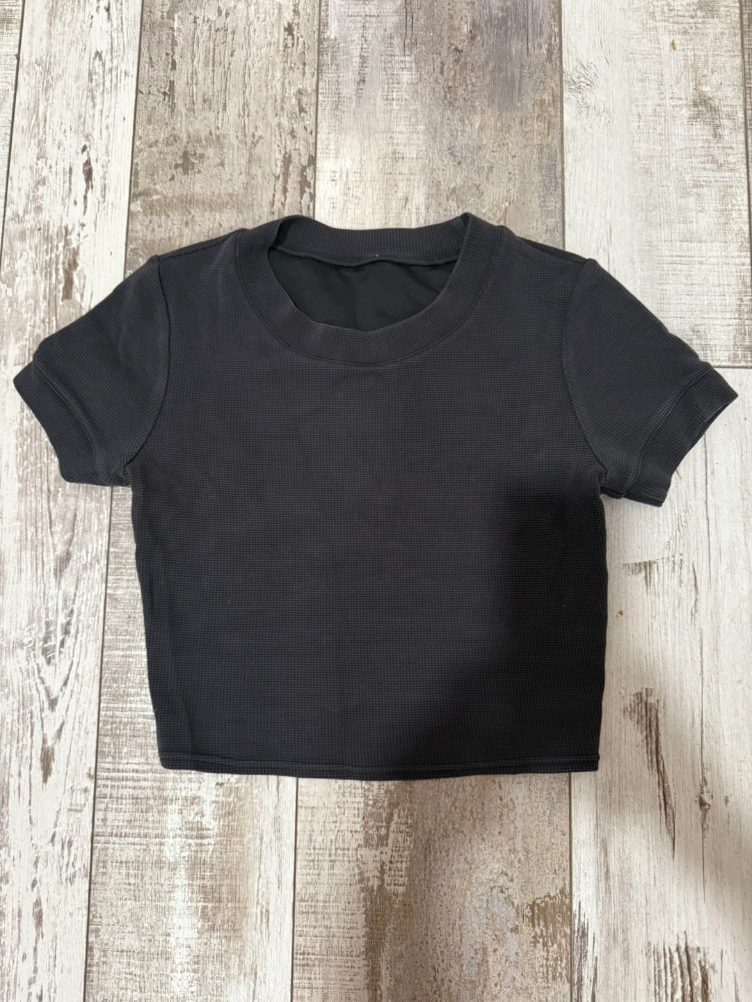 Alo Yoga waffle knit cropped t-shirt. Short sleeves. Black. Great for layering or wearing alone.