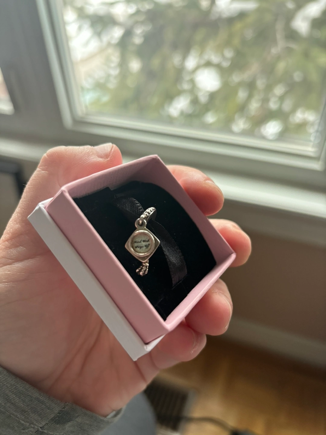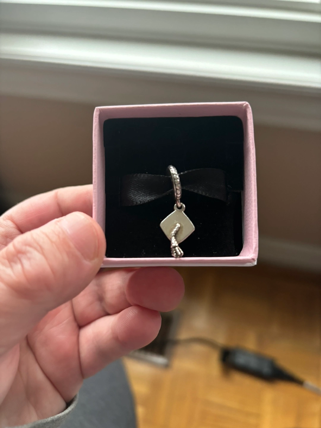 44Graduation cap charm. Fits Pandora bracelets. Inside cap reads” hard work pays off.” Pre loved.