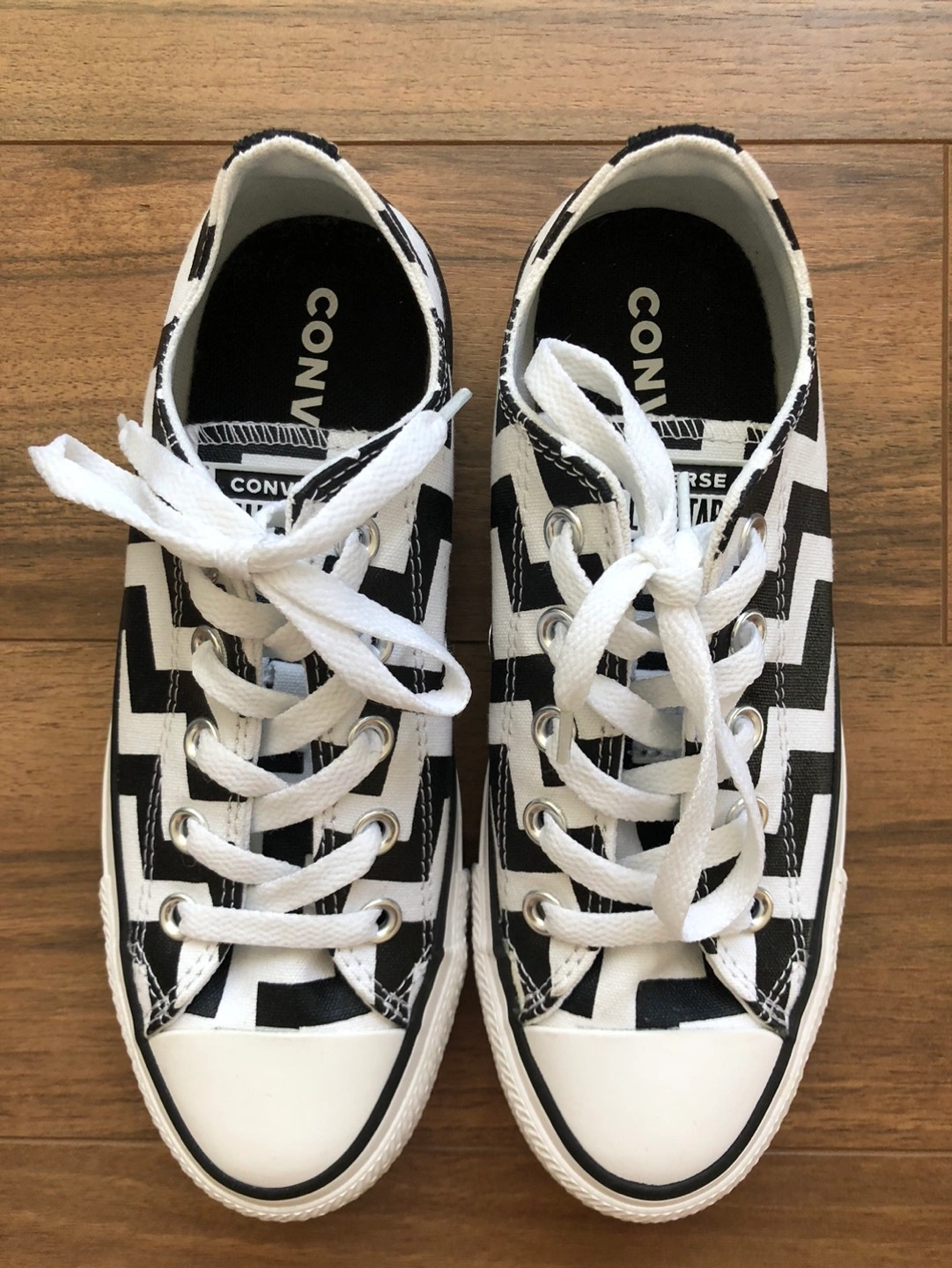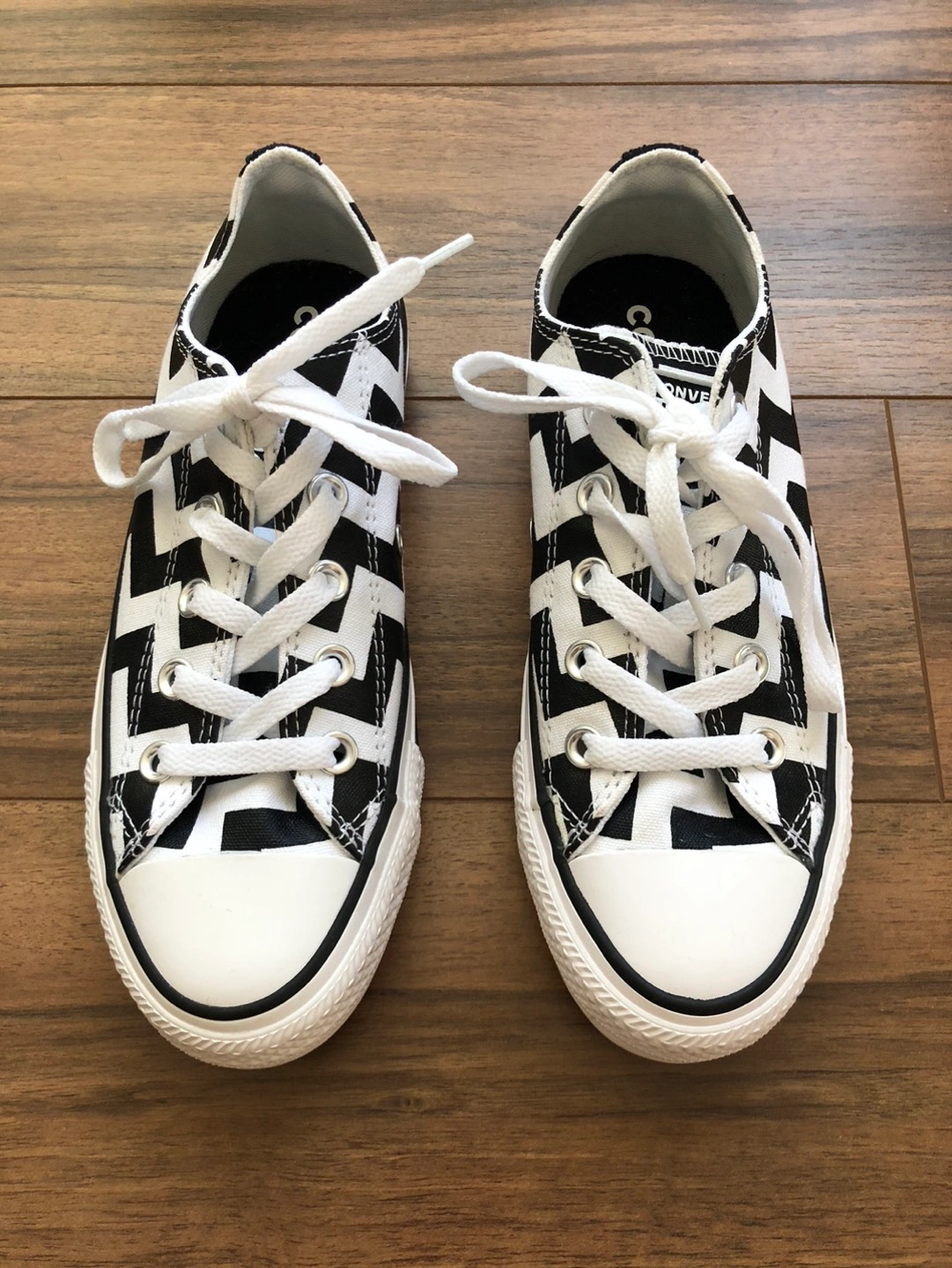 Brand new, never been worn (no tags and no box) Chuck Taylor Converse All Star "Glam Dunk" low top sneakers. Women's size 6 (EUR 36.5). Black and white pattern.