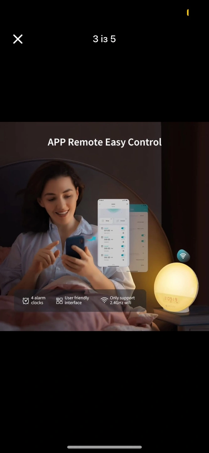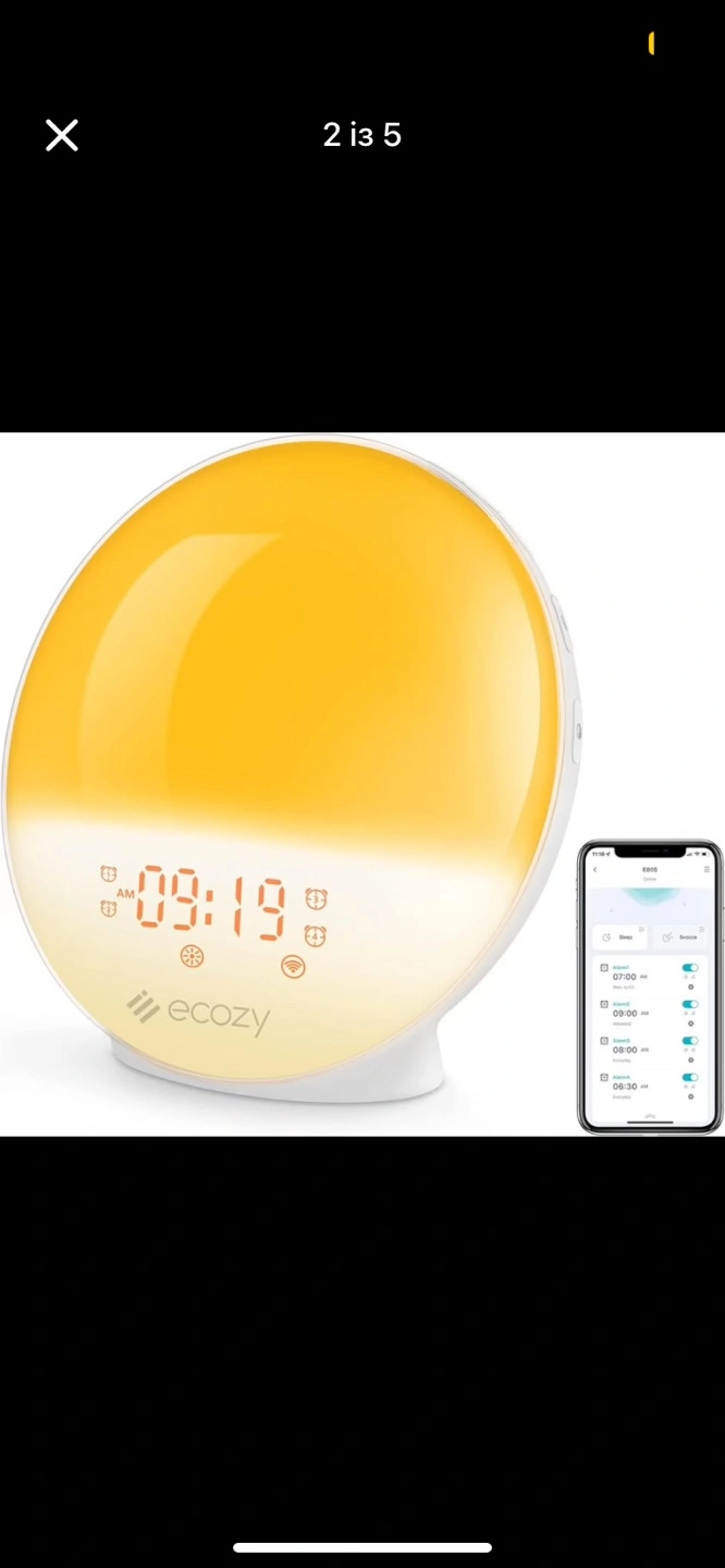 31ecozy E80S Sunrise Alarm Clock for Heavy Sleepers, Smart Wake Up Light with SunriseSunset Simulation, App & Voice Controlled, Natural Sounds & FM Radio, 4 Alarms & Snooze, 7 Colors Night Light for Bedroom New product. We can meet at the corner of Royal York Rd at The Queensway, Etobicoke. Game Changer with Sunrise Simulation: The alarm clock with sunrise simulation and gentle ringtone is designed to ease you awake as opposed to shocking you into consciousness. The clock offers adjustable light brightness settings that slowly brighten over a customizable period (10-60 mins) before the alarm sounds. This digital alarm clock is designed for everyone in fact, especially for heavy sleepers and kids Smart APP and Voice Control: The smart wake-up light alarm clock can be connected to WiFi(2.4GHz network only) and controlled remotely through EcozyHome APP. Through the APP, you can set up to 4 alarm clocks. The APP interface setting is simpler and more time-saving than the manual setting. Plus, it also works with Amazon Alexa Built-in Natural Sounds & FM Radio: Pick your favorite sound from 10 natural sound options (Bird/stream/beep/waves/wind chimes/piano/soft/cricket/rain/fire) with 16-level volume adjustable. For radio fans, we've got you covered! Not only can listen to the radio to kill time but also can wake up with the radio (automatically scan stations within frequency 76 - 108 MHz) 7 Colorful Atmosphere Light: The clock will soft gradually increase of light with 7 colors, which give you and your lover a beautiful and romantic moment. You can also choose your favorite light mode as night light/bedside light/reading light/mood light. The soft and warm light will accompany you through a wonderful bedtime Sleep Aid Therapy Lamp: It's not just an ordinary wake-up light. It can also be your sleep aid light. Simulating a fading sunset to provide a restful atmosphere and help alleviate sleep problems. Sleep timer duration can be set from 10-120 minutes. Fall asleep by listening to natural sounds or FM radio stations About APP Networking: To offer a better customer user experience, we have newly upgraded the App networking workflow and decreased the networking steps. If you have questions about the App and the product, please feel free to contact us 7-1-5/28=7