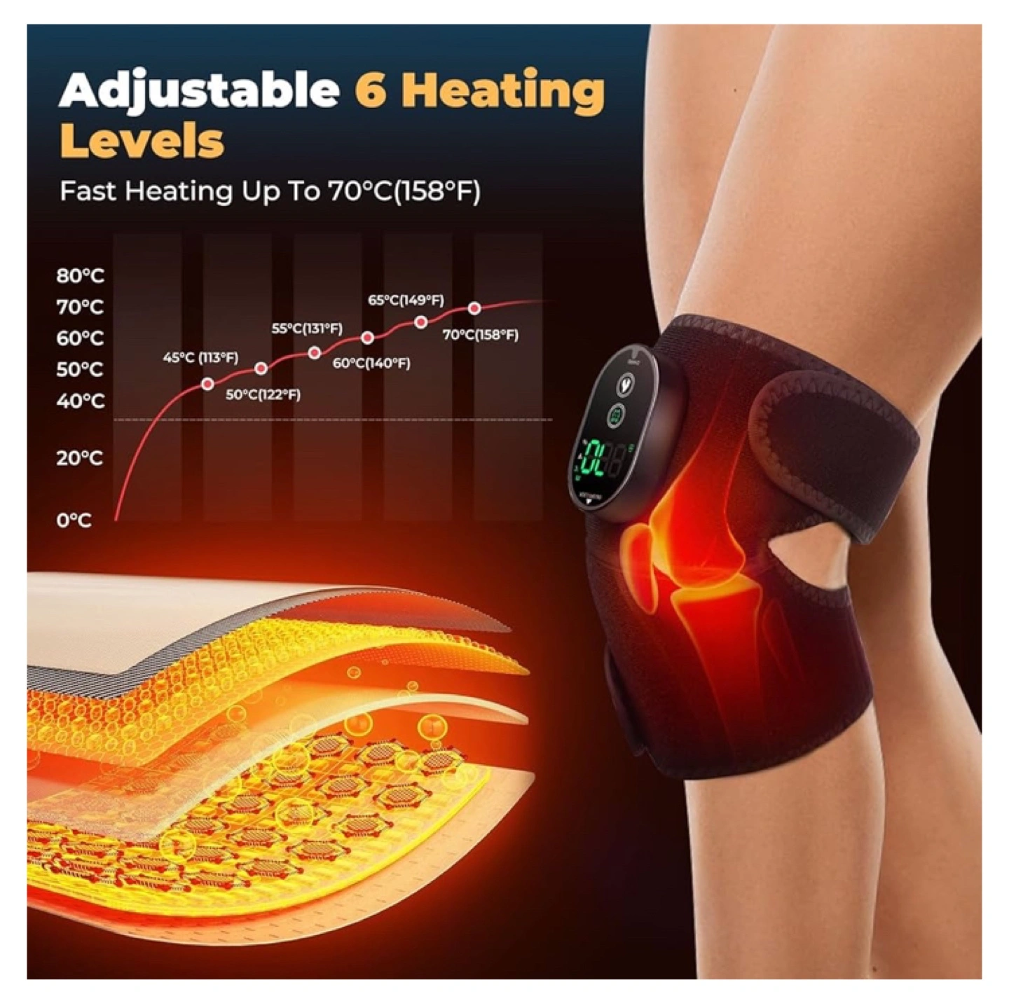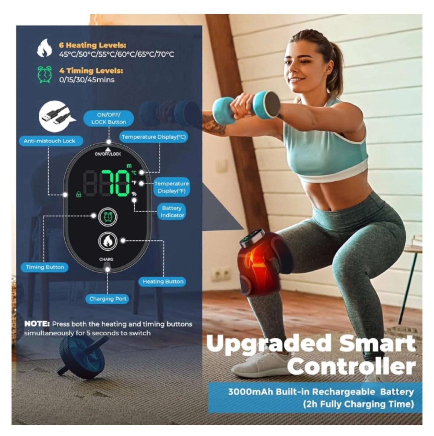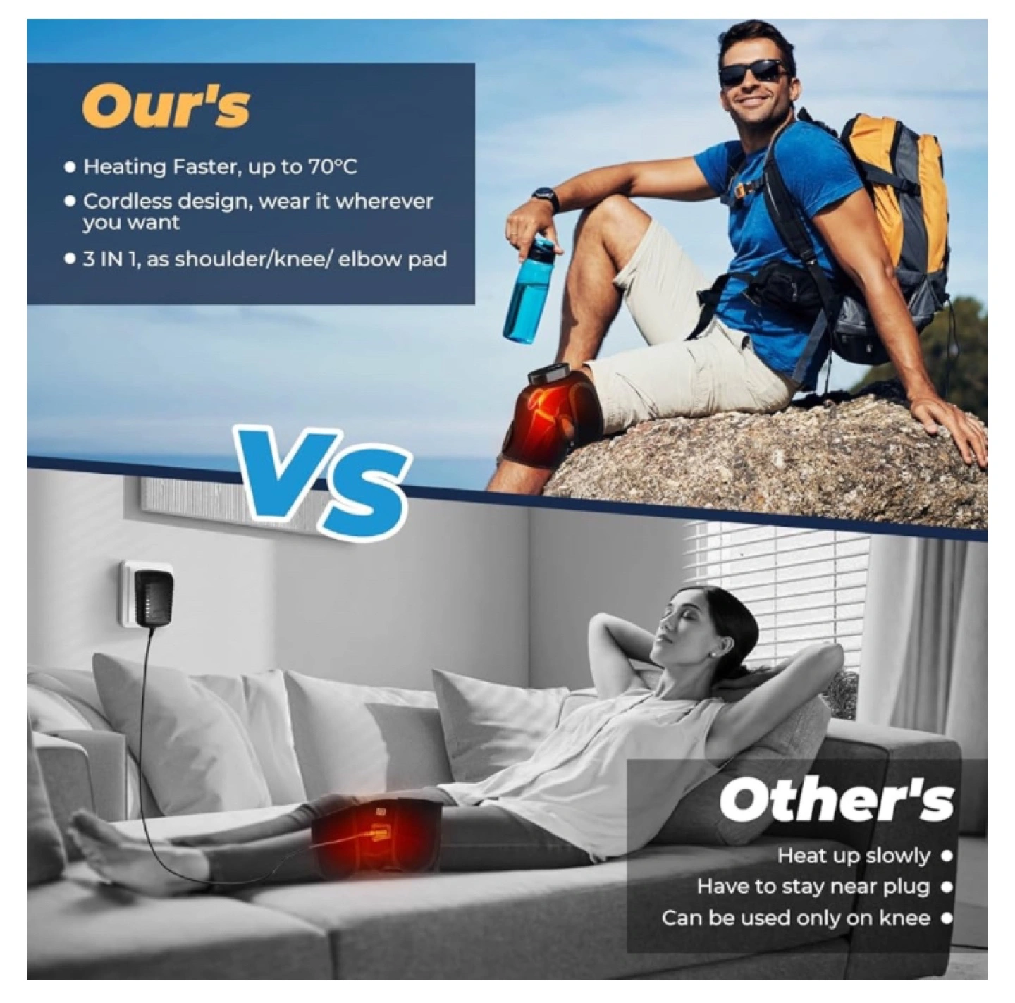31RELAX YOUR BODY: knee heating pad has extension straps that allow the knee brace to be easily used in different areas. The knee heating pad can relieve joint coldness, muscle soreness, knee stiffness, overstrain, etc SIMPLE OPERATION, 6 HEATING LEVELS& 3 TIMING LEVELS: The knee heating pad is designed with 6 levels of temperature adjustment, 45°C/50°C/55°C/60°C/65°C/70°℃, and 4 time settings, 15/30/45mins, enjoy the comfort and care brought by smart heating knee pads CORDLESS & TOUCH SCREEN: You are not bound by the charging cable when using the heated knee brace. Anti-accidental touch and 45min intelligent timing function allow you to move more . 3000 mAh is enough to meet your usage needs COMBINED USE: The heated knee wrap is designed with a built-in mesh pocket, you can put gel, ice packs for use THE IDEAL GIFT FOR MEN AND WOMEN: Choose NORTHERN BROTHERS knee heating pad as a to express your care for your family and friends, share health and comfort. Note: Do not wear heating pads for knees for too long to avoid dependence on the knee pads 5-2-5/18=3