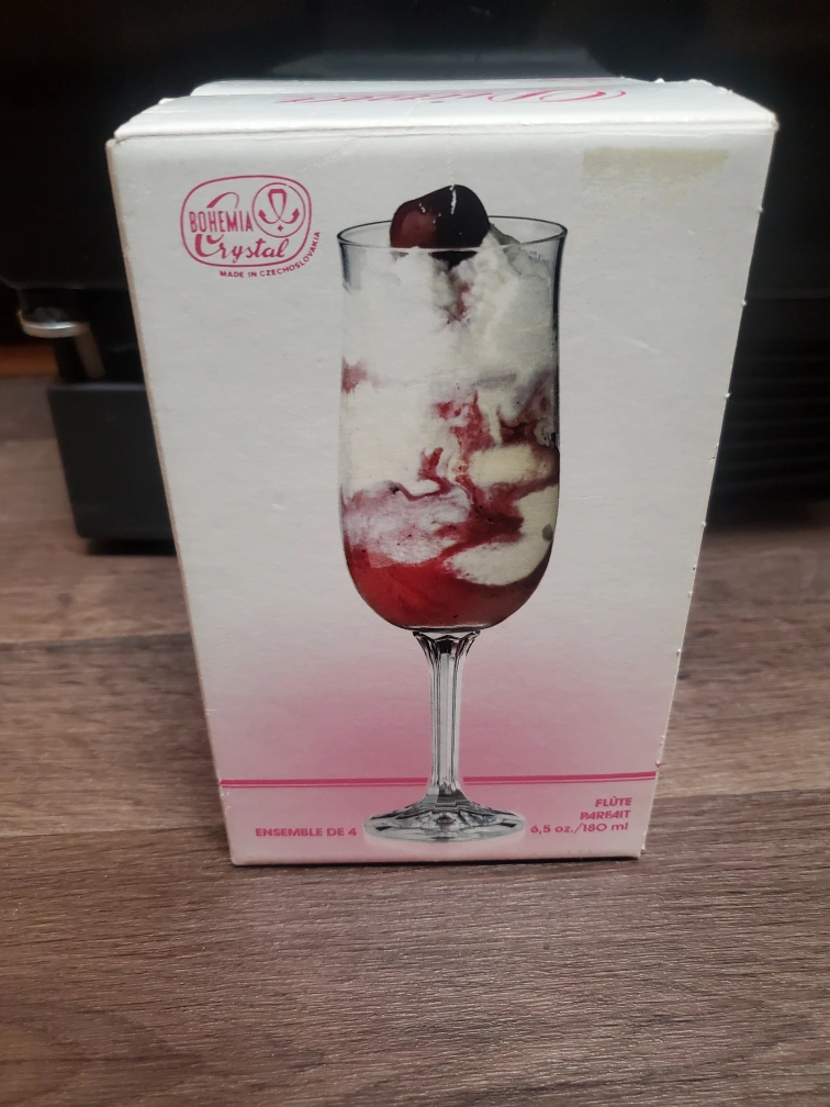 71This is for a set of 4 Champagne Flutes - from the company Bohemia Crystal. They are made in Czechoslovakia. New in original box. Other Bohemia Crystal sets Available. Pickup dufferin and Steeles area or shipping available for a fee.