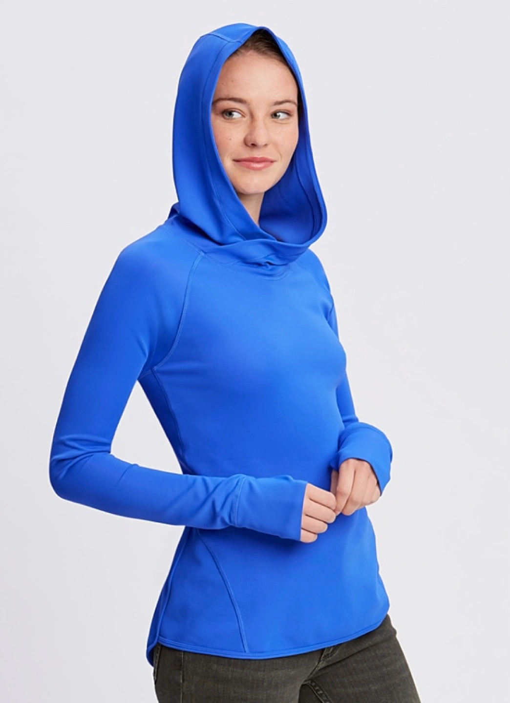 Cozy long-sleeve hoodie. Features a cowl neck and thumbholes. Perfect for layering or wearing alone. Great condition.