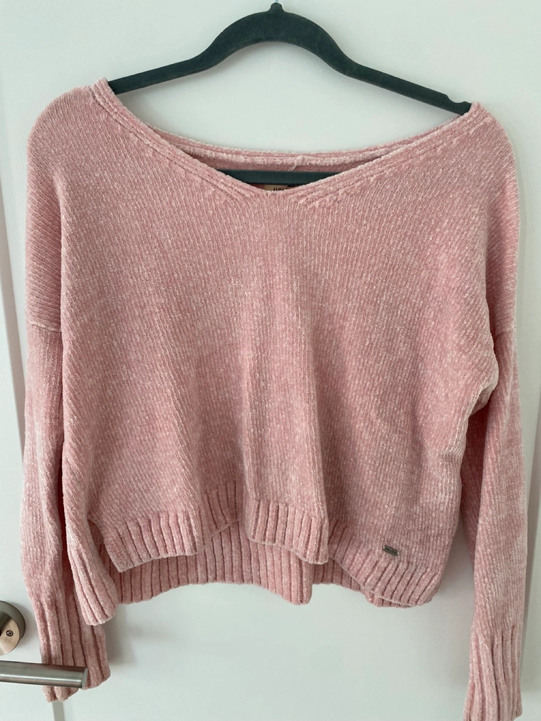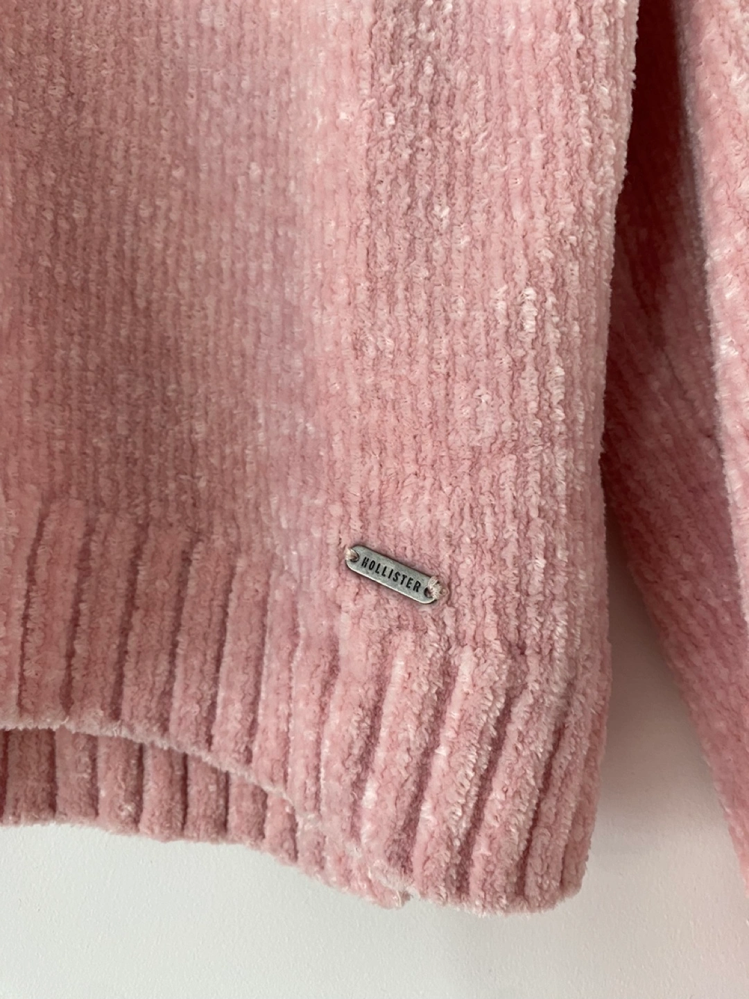 Dusty rose coloured cropped sweater with a V-neck and Long sleeves with a Soft velvet material.