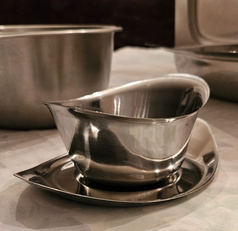 ●Vintage from the 1960s: Revere Ware stainless steel melting pan or double boiler insert pot. Great for melting chocolate, or for thawing out frozen sauces and other items.
