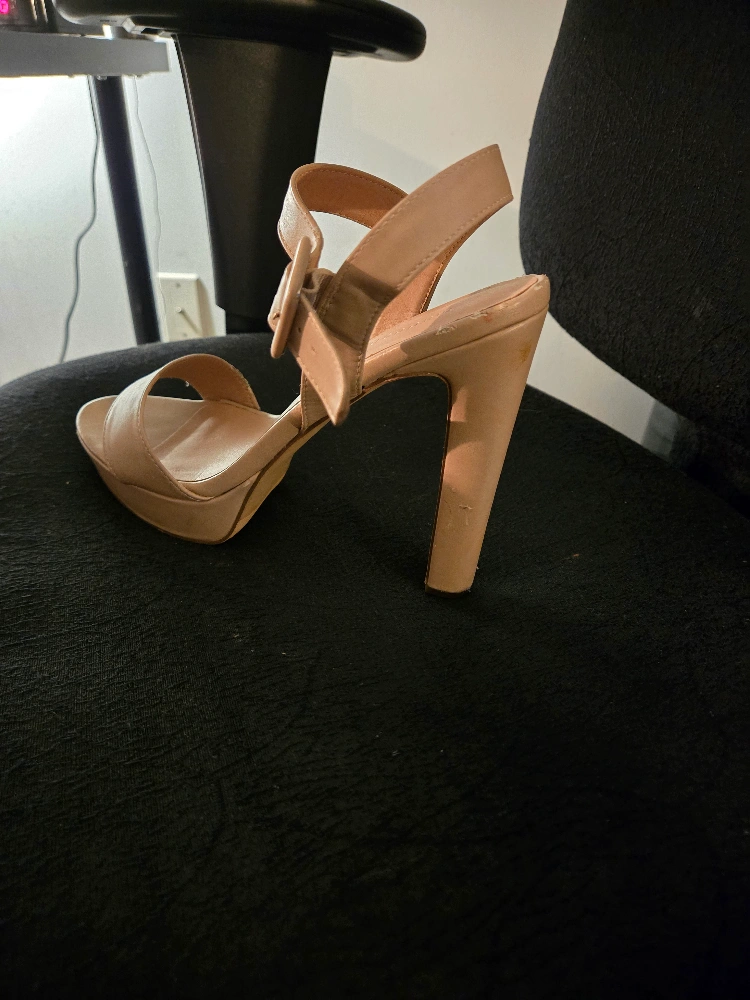 Nude-coloured platform heels. Ankle strap with buckle closure. Slight wear like new used 2 times. Size 8.5
