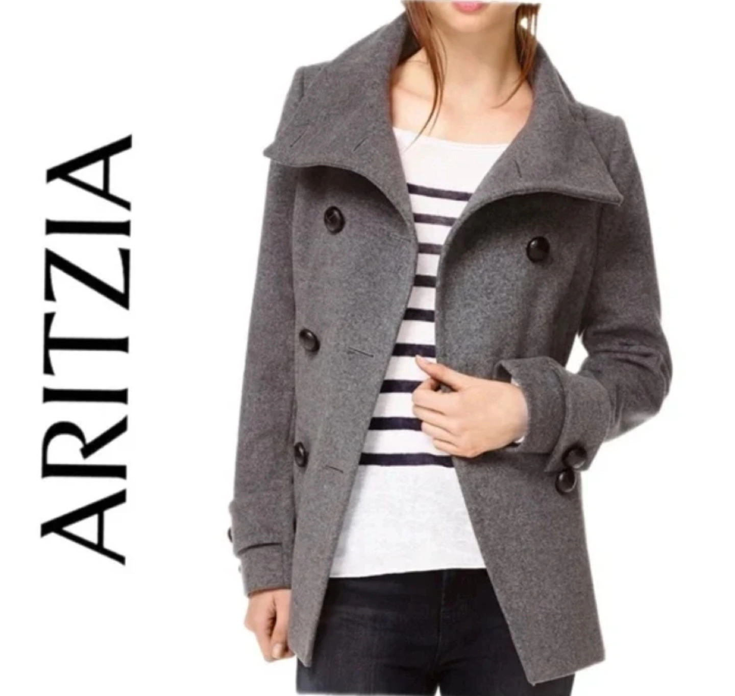 Recently dry cleaned grey pea coat from Babaton (Aritzia).
