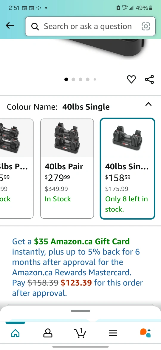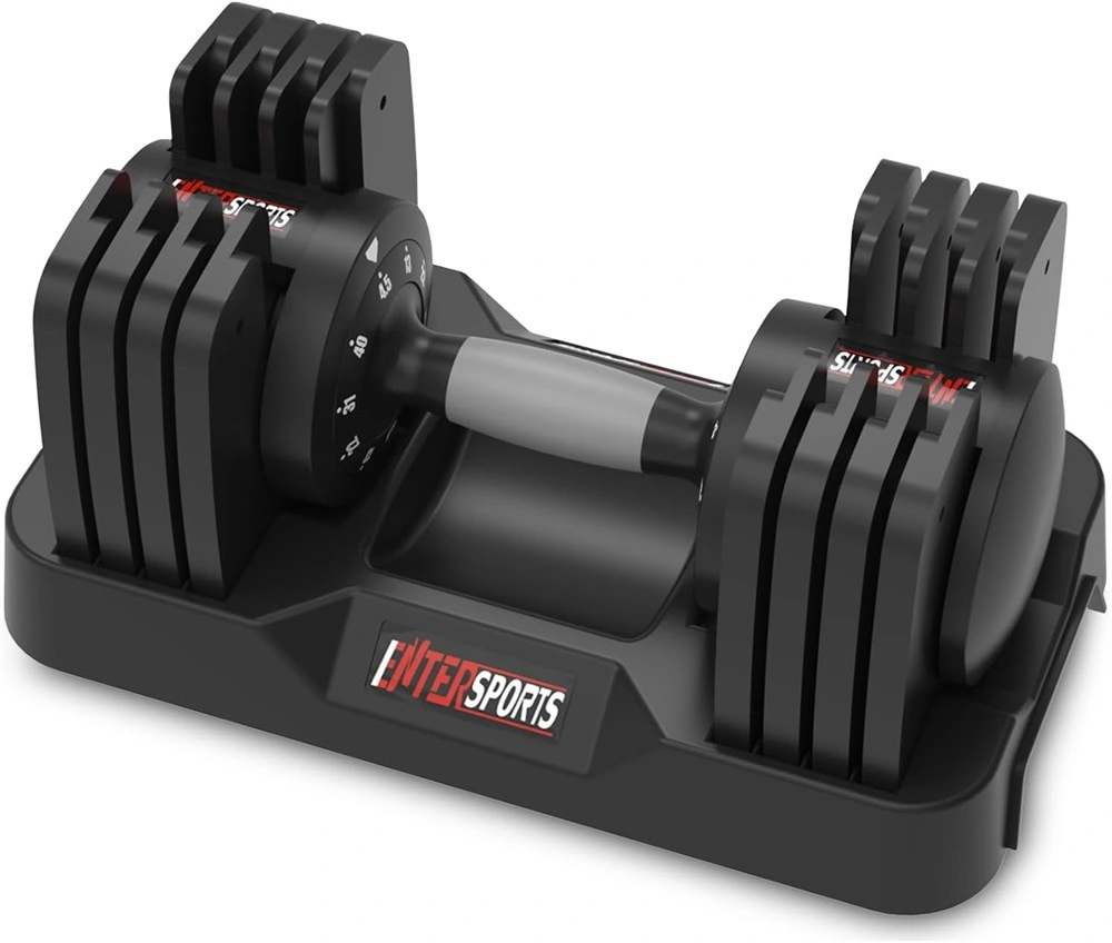 31Adjustable dumbbell, single unit. 40lbs maximum weight. Features a non-slip, comfortable handle. Great for daily workouts. Includes base.