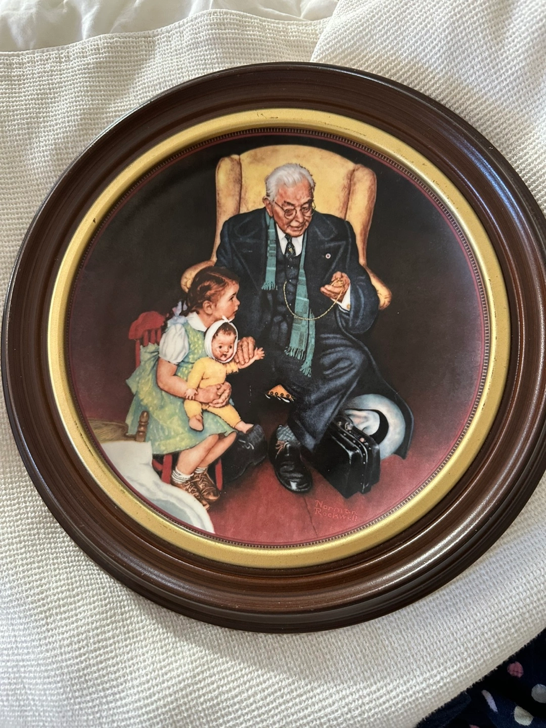 Collectible plate, framed. Features Norman Rockwell artwork. Limited edition, part of the Norman Rockwell Family Trust collection. Plate number and year included. Excellent condition.