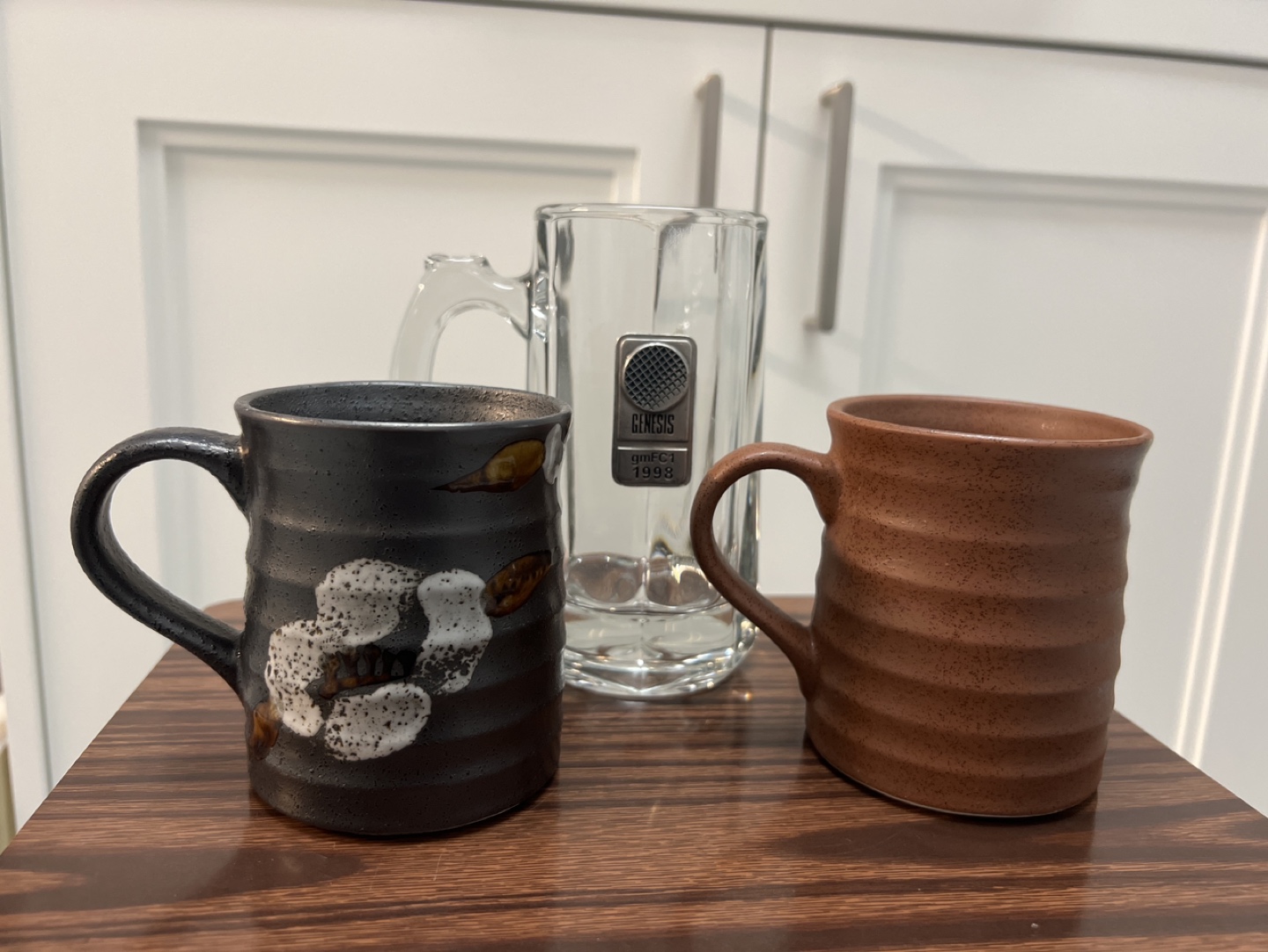 3623 free mugs. Brown and black mugs: 8 cm in diameter, 9.5 cm height. Transparent mug: 7 cm in diameter, 14.5 cm height. Pick up at Yonge and Finch area.