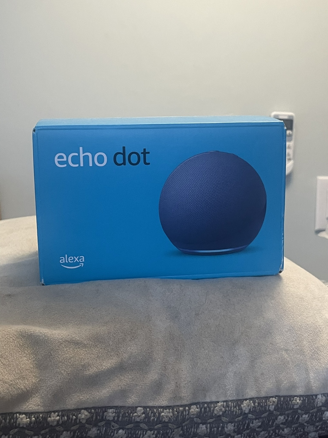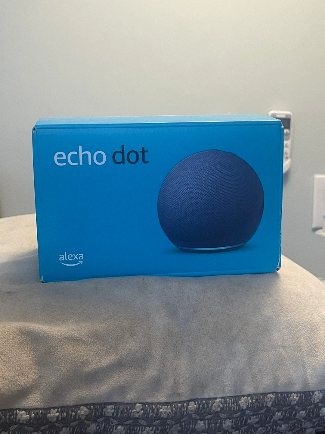 Brand new, unopened Echo Dot (5th generation) smart speaker. Dark blue fabric design. Alexa enabled. Comes in original packaging.