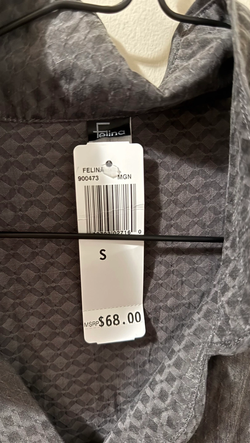 Félina brand blouse. Size small. Gray colour. Long sleeves. Geometric pattern. New with tags.
