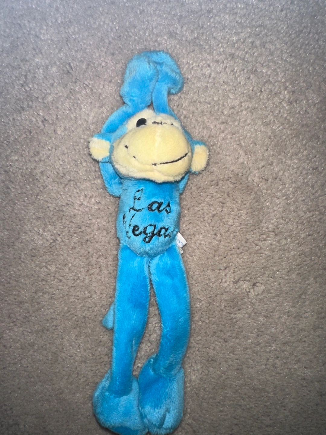 Adorable magnetic blue monkey plush toy. Long, stretchy limbs. Says "Las Vegas" on its belly. Great souvenir.