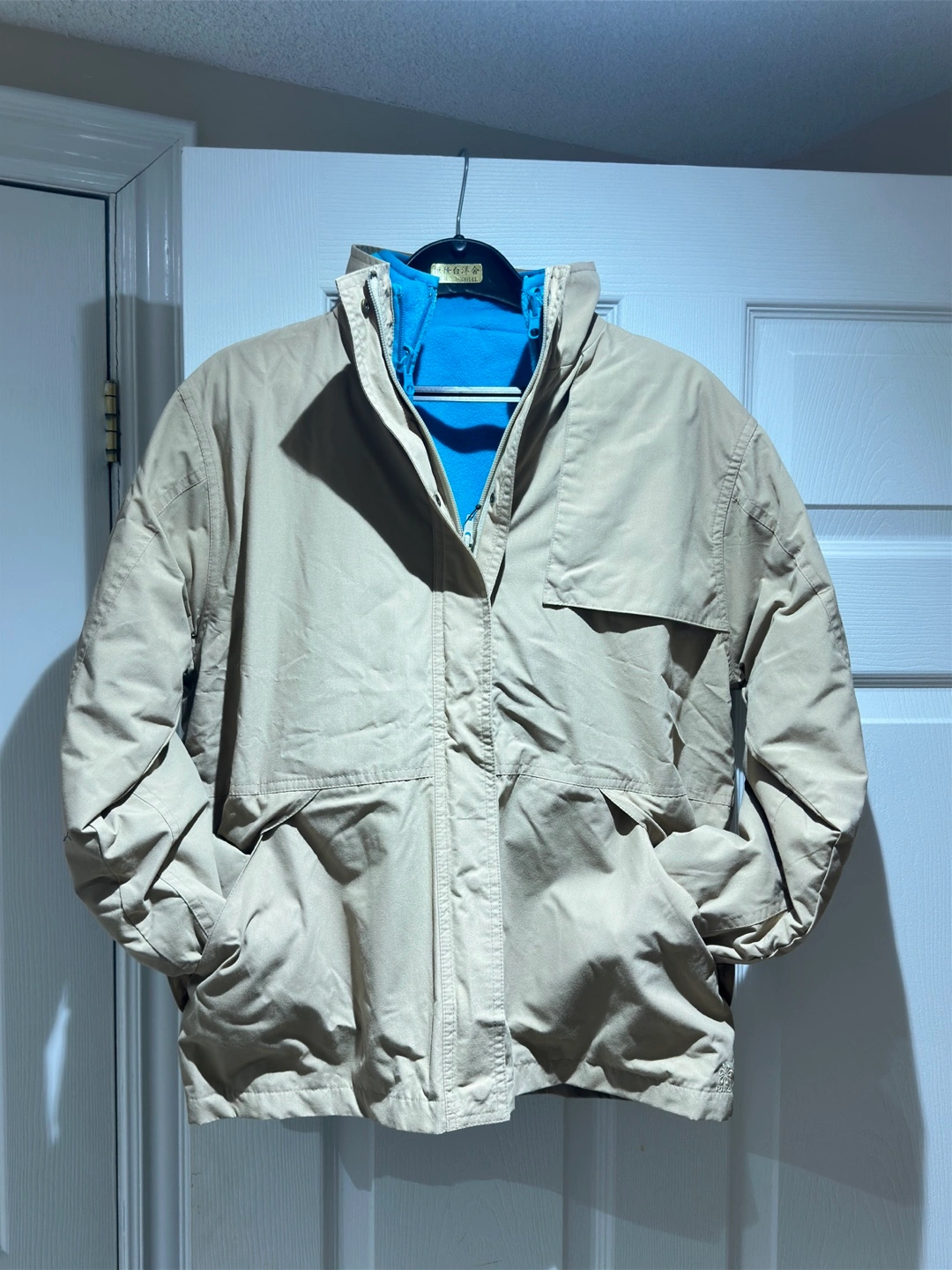 Two Members Mark 2-in-1 jackets. Grey and tan colour options. Outer shell and zip-in fleece liner. Great for layering.