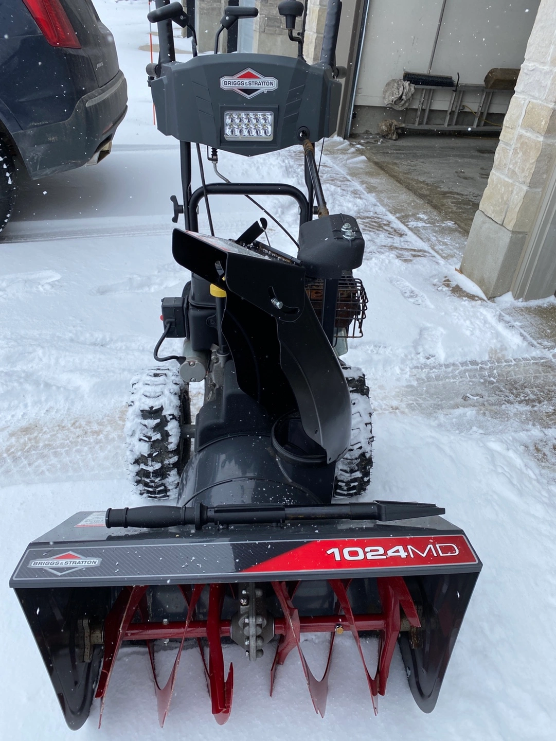 Powerful snowblower, great for clearing driveways and walkways. Features a 208cc Briggs & Stratton 950 engine. Model 1024MD. Fully serviced in December 2024 - ready to go.