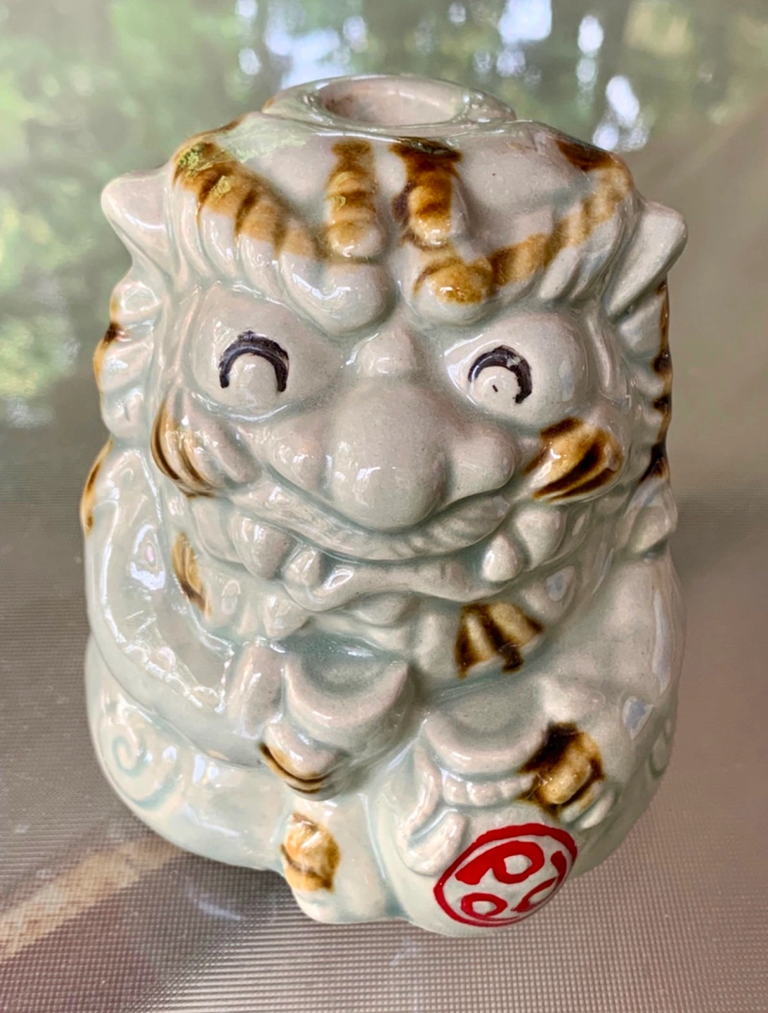 Unique vintage ceramic candle holder. Features a cute foo dog design.