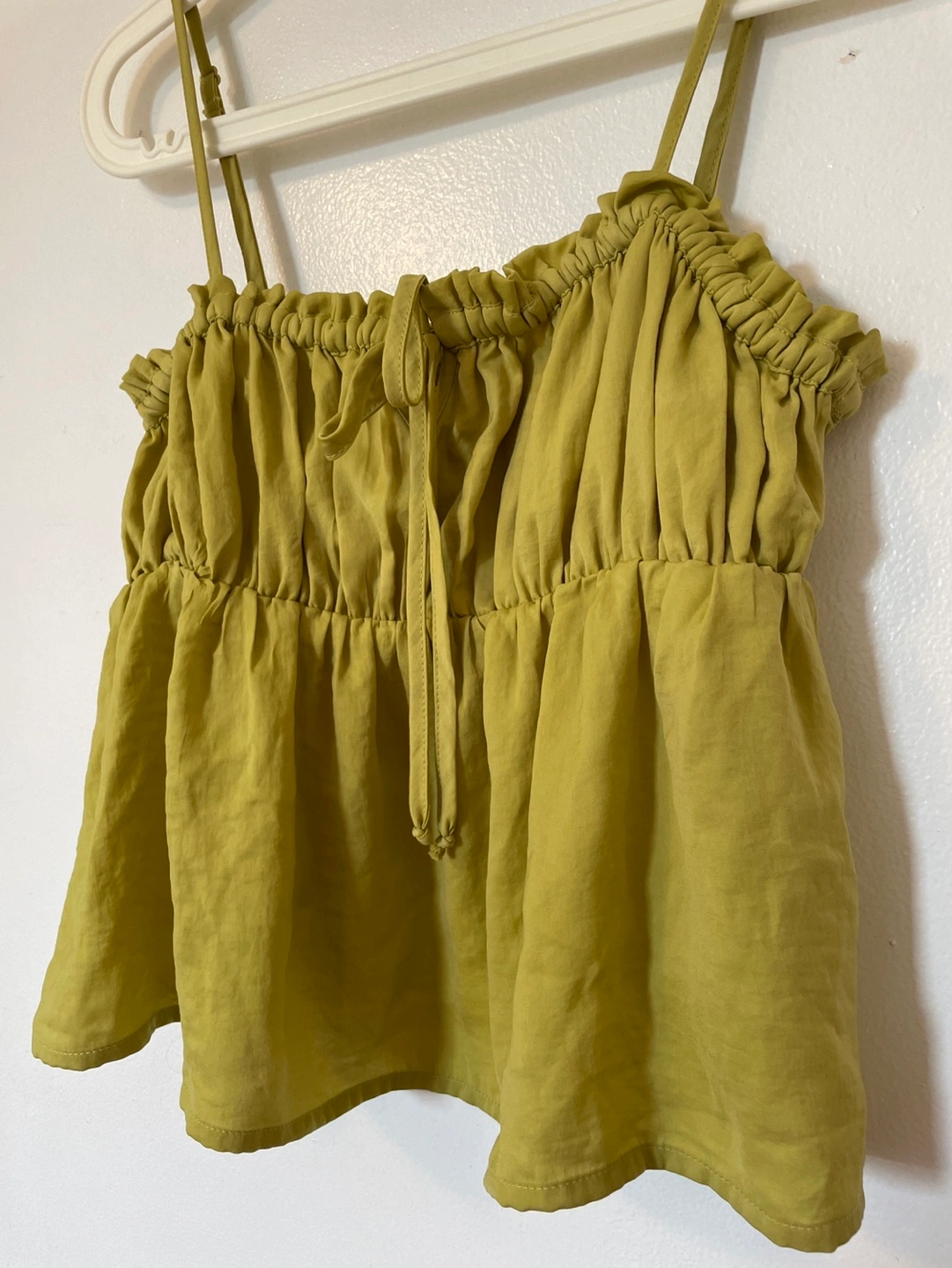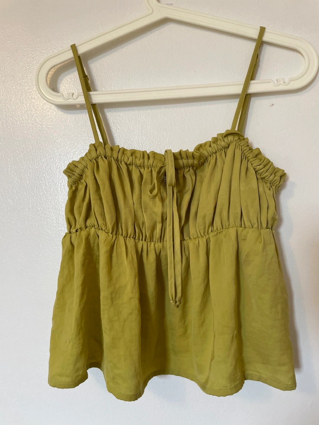 Cute olive green crop top. Features ruched detailing and adjustable straps. Size small. Excellent condition.