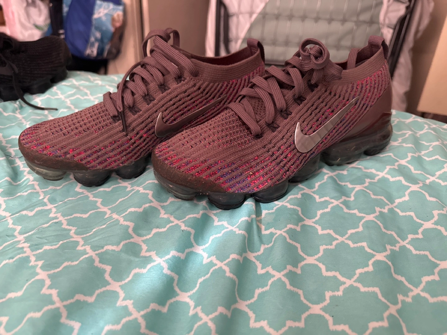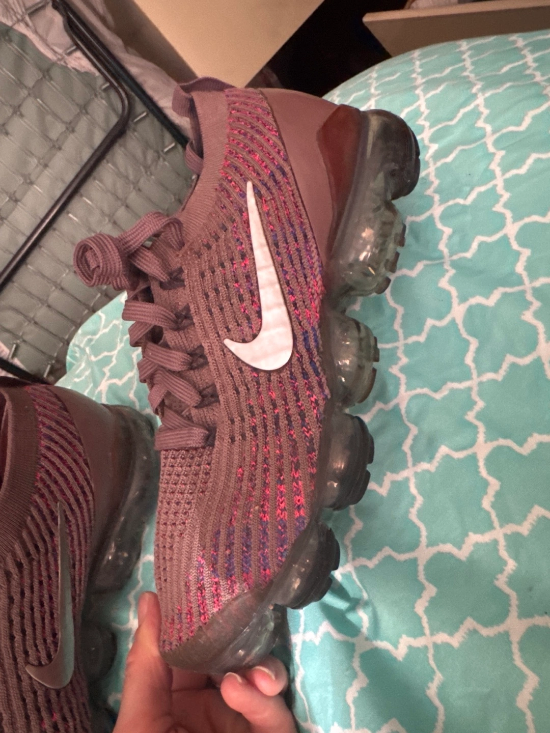 Womens Nike Vapormax Flyknit 2 running shoes. Size 7. Used condition. Some wear and tear on soles. Knit upper. Air Max cushioning.