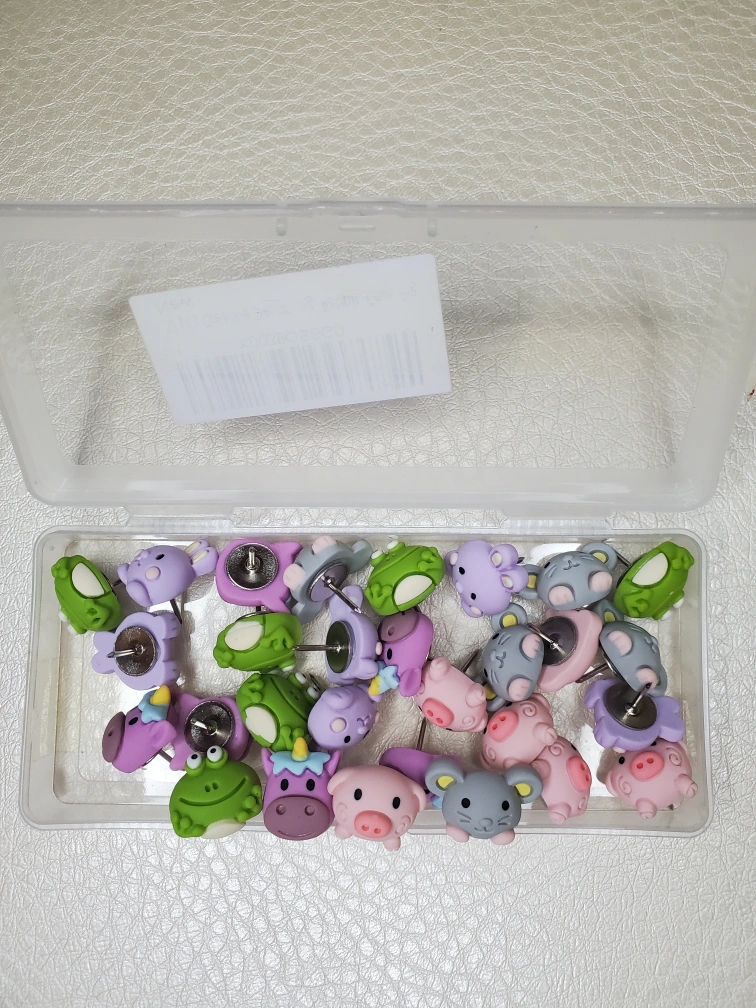 214Set of adorable animal push pins. Variety of colors and animals. Perfect for organizing or adding a touch of whimsy.