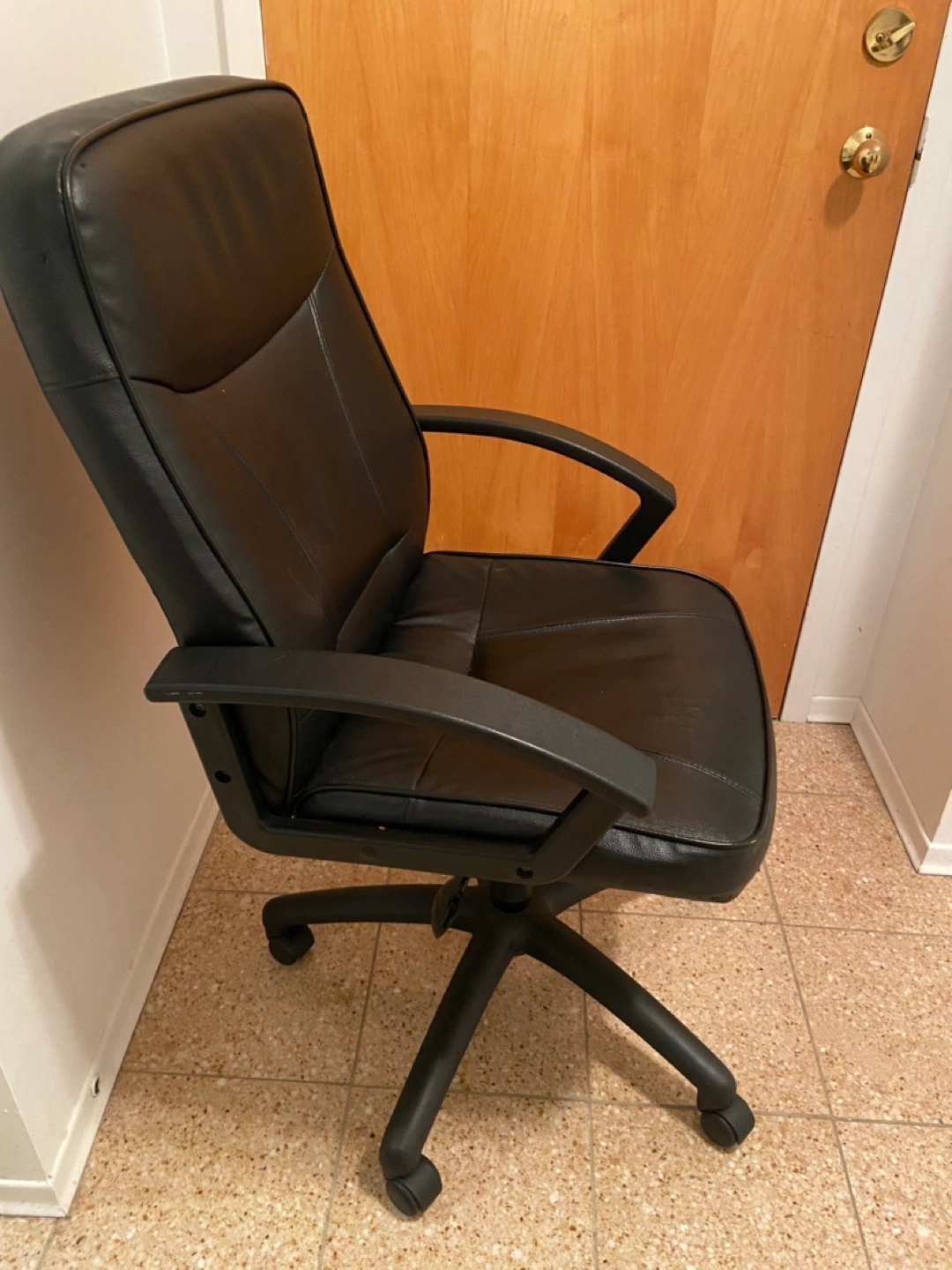 I have a spare used office chair. It’s completely comfortable leather chair. Leather from seating part is coming apart (Check last picture), can be fixed using leather glue. Need to pick up. Originally bought this for 550$. Asking for 40$ OBO.