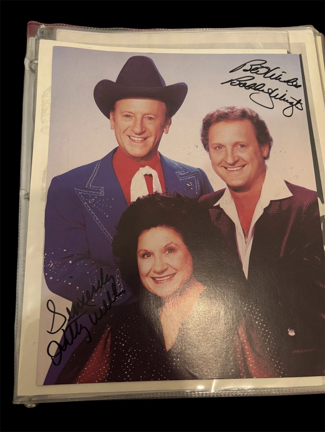 Vintage signed photo of The Wilkins Family. Features three members. Presented in a plastic sleeve.