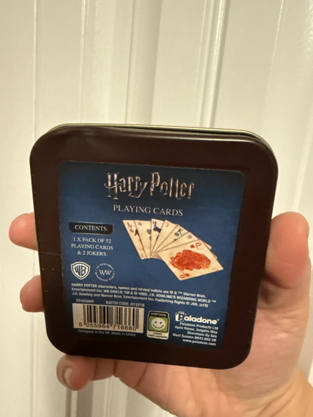New Harry Potter playing cards. 52 cards and 2 Jokers. Comes in a collectible tin. Perfect for fans!