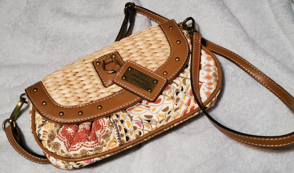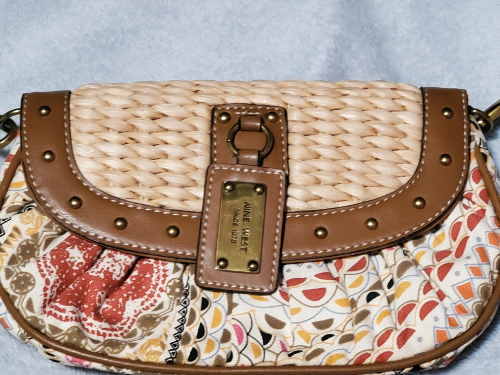 Nine West Straw and Fabric Crossbody Bag