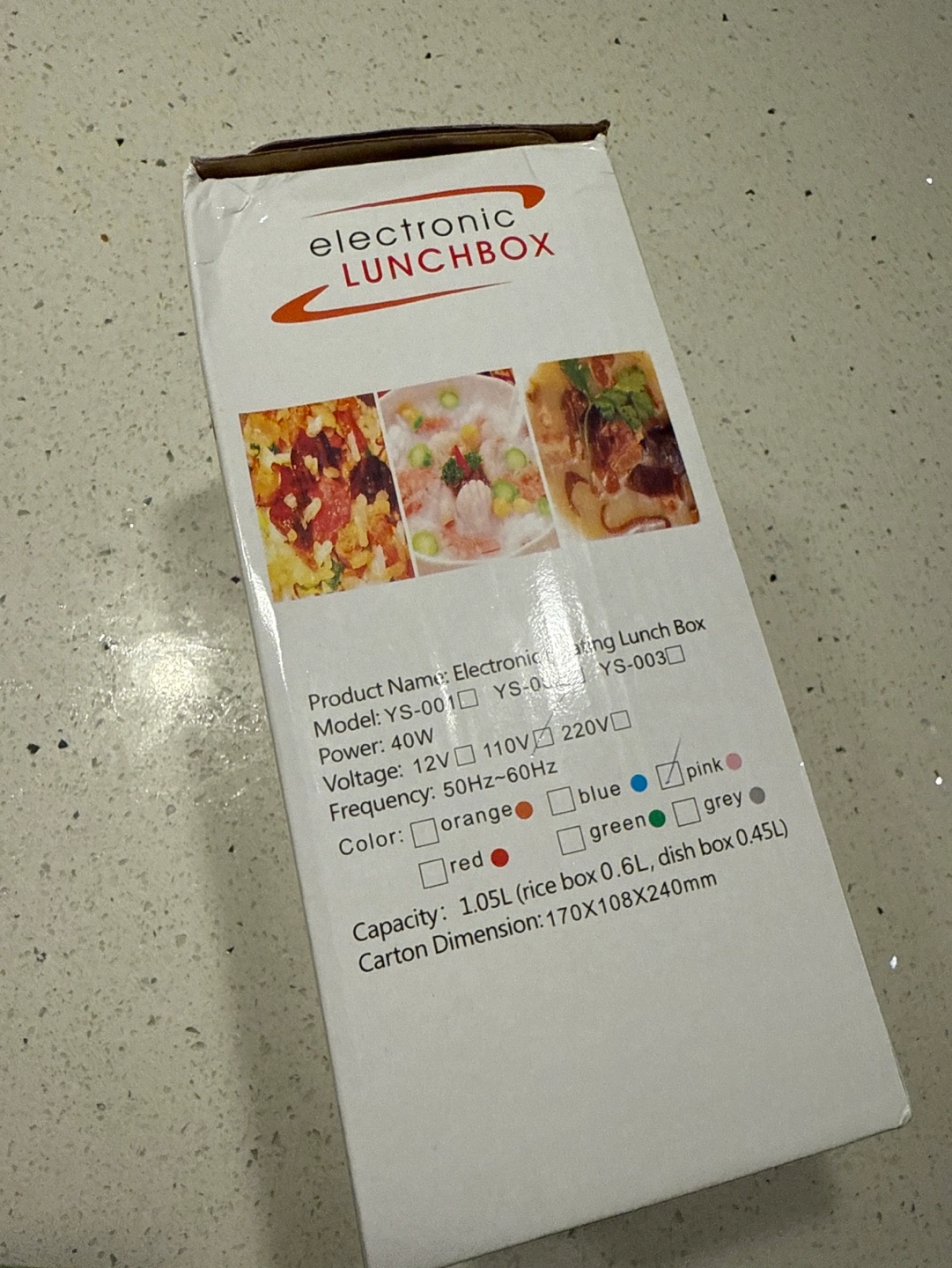 Electric lunchbox, dual-function for heating and warming. Keeps food warm and fresh. Stylish and fashionable. High temperature resistant materials. Includes a round cover to keep steam in. PTC heating element is safer, more convenient and energy-saving. Available in multiple colours. 1.05L capacity.