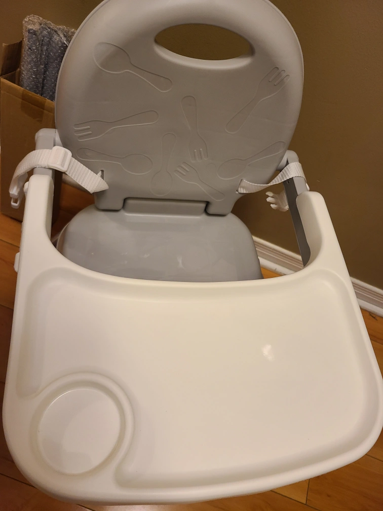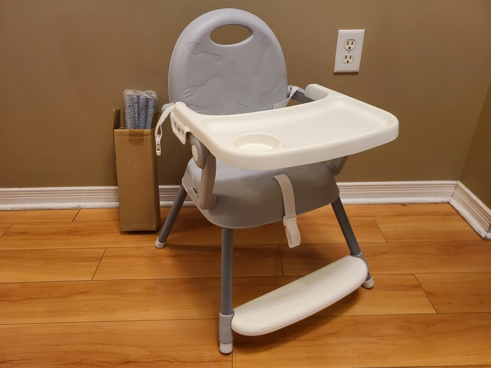 can be adjusted for two different heights (via leg extension) or strapped to chair .