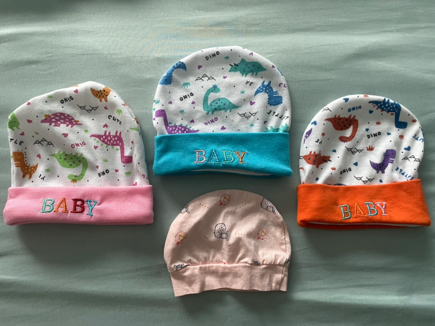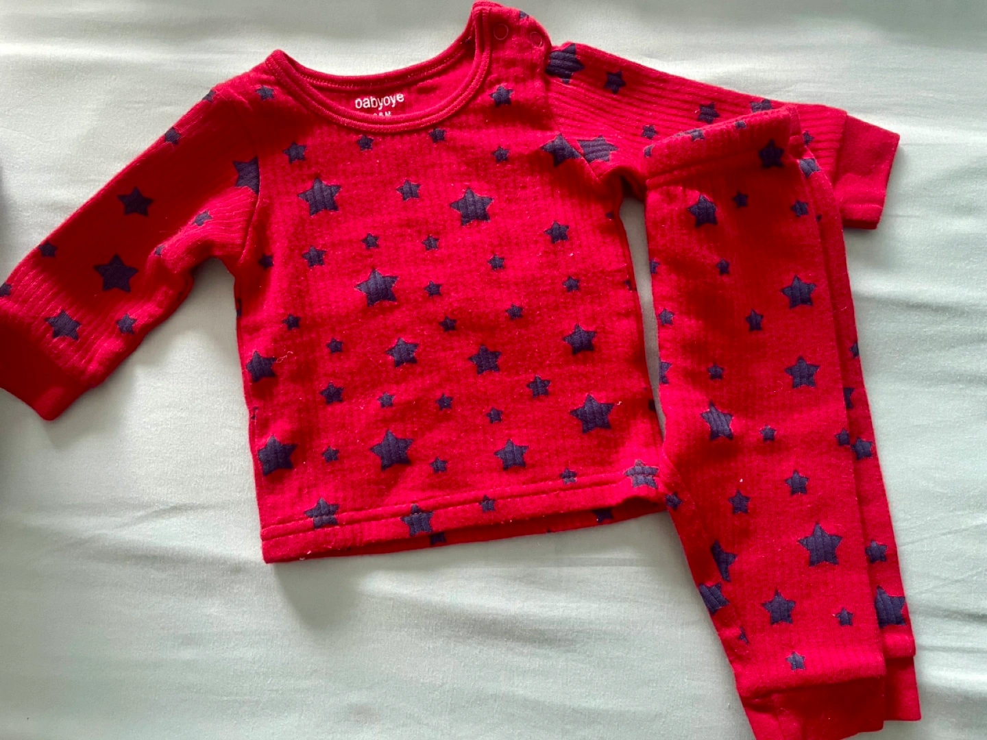 Six adorable newborn baby outfits. Various colours and patterns. Long-sleeved shirts and pants. Snap closures on shirts. Soft fabrics. Perfect for your little one.