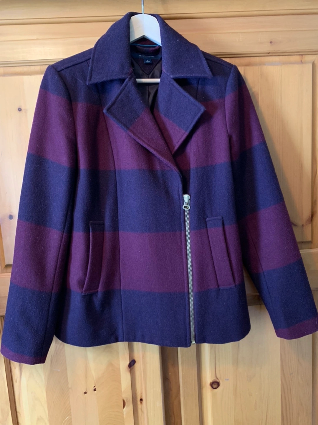 Tommy Hilfiger Burgundy Red Wool Striped Coat