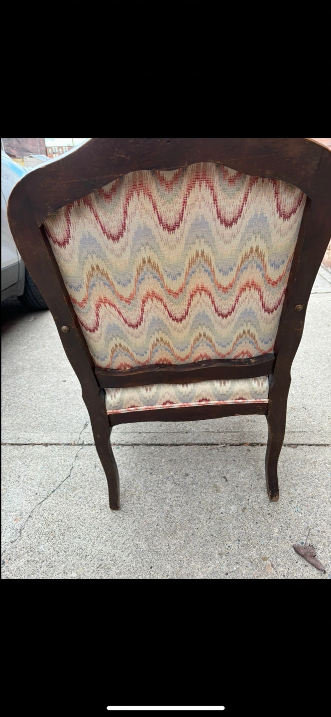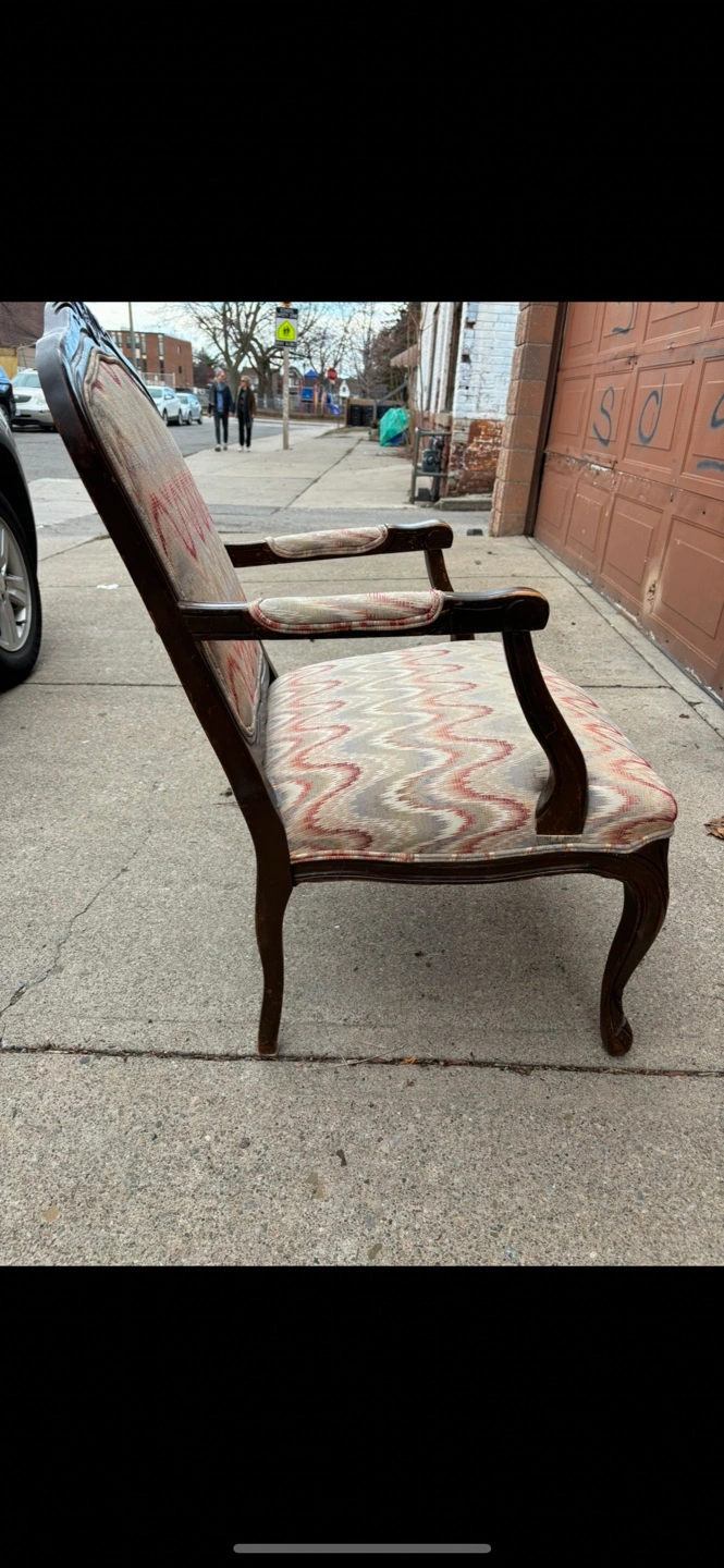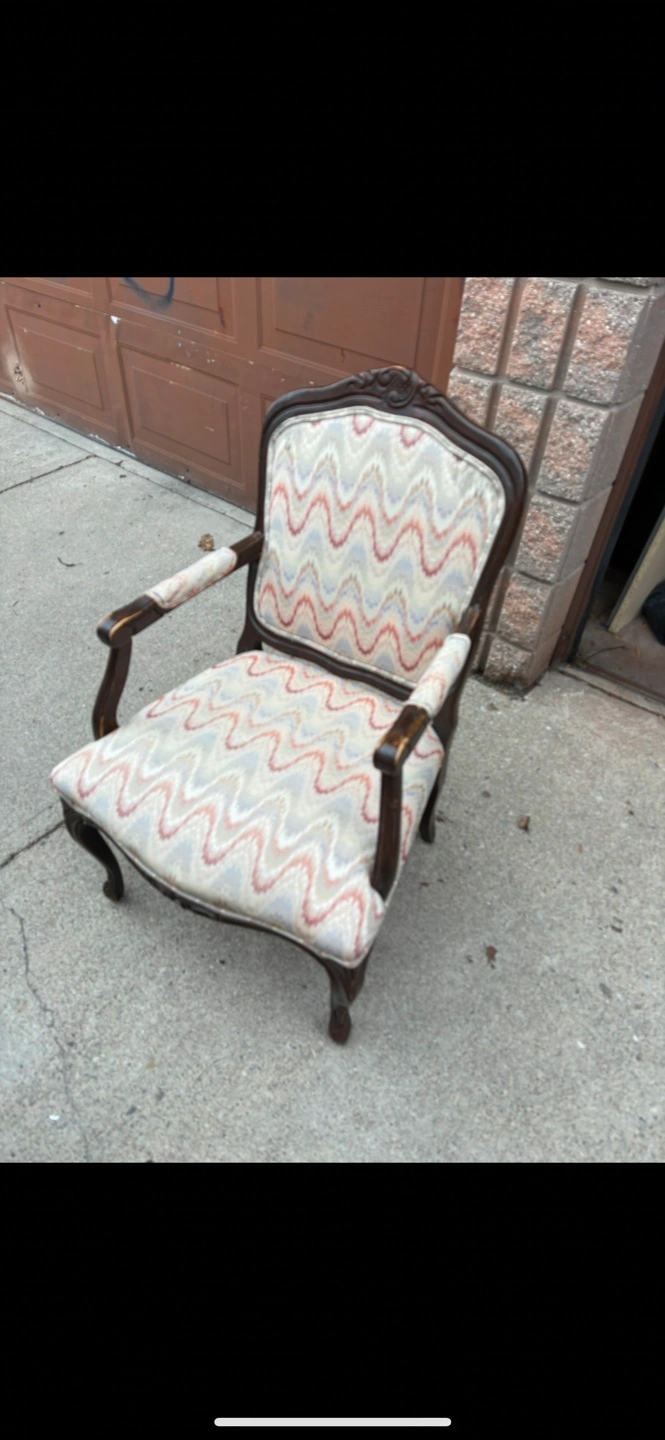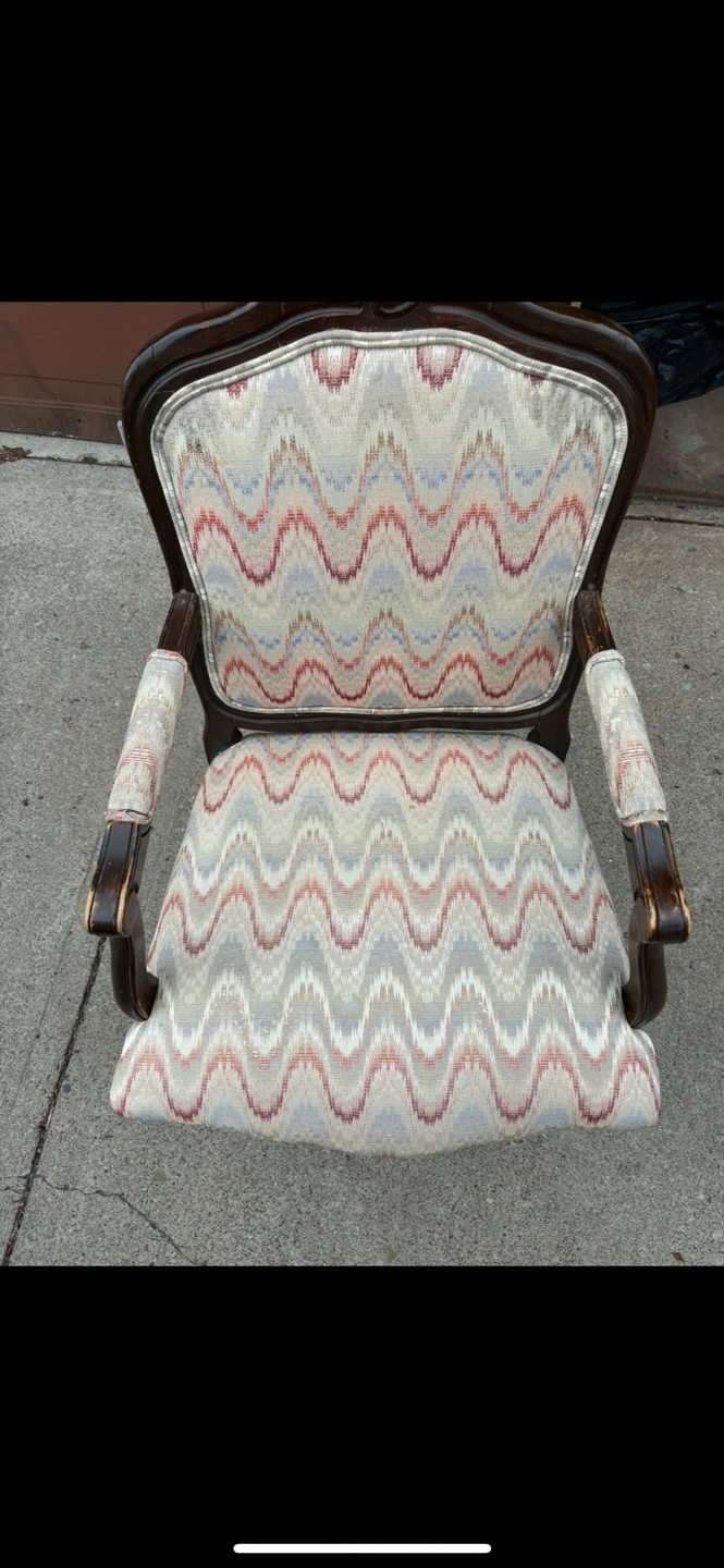 376Ornate wooden frame. Unique wave pattern upholstery. Armrests included. Excellent addition to any home. Vintage in great shape. Smoke free pet free home Pick up can be Rathburn and the west mall area Or Symington and DuPont