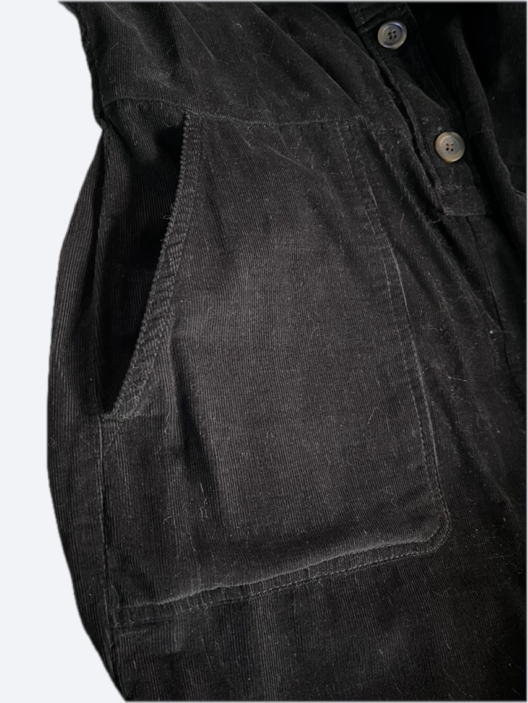 Joe Fresh Black Boiler Suit. Soft corduroy. Size Medium. Full length with cuffed pants. Pockets! Measures approx. 16” across the waist (with some stretch), 20” pit-to-pit flat, 17” across shoulder hems, 23” arm length (shoulder hem to cuff), 60” total length. Pick up only near Gus Tacos in Parkdale. Weekdays after 4pm or on weekends. Hard to take photos to show the entire length. Happy to take more photos upon request.