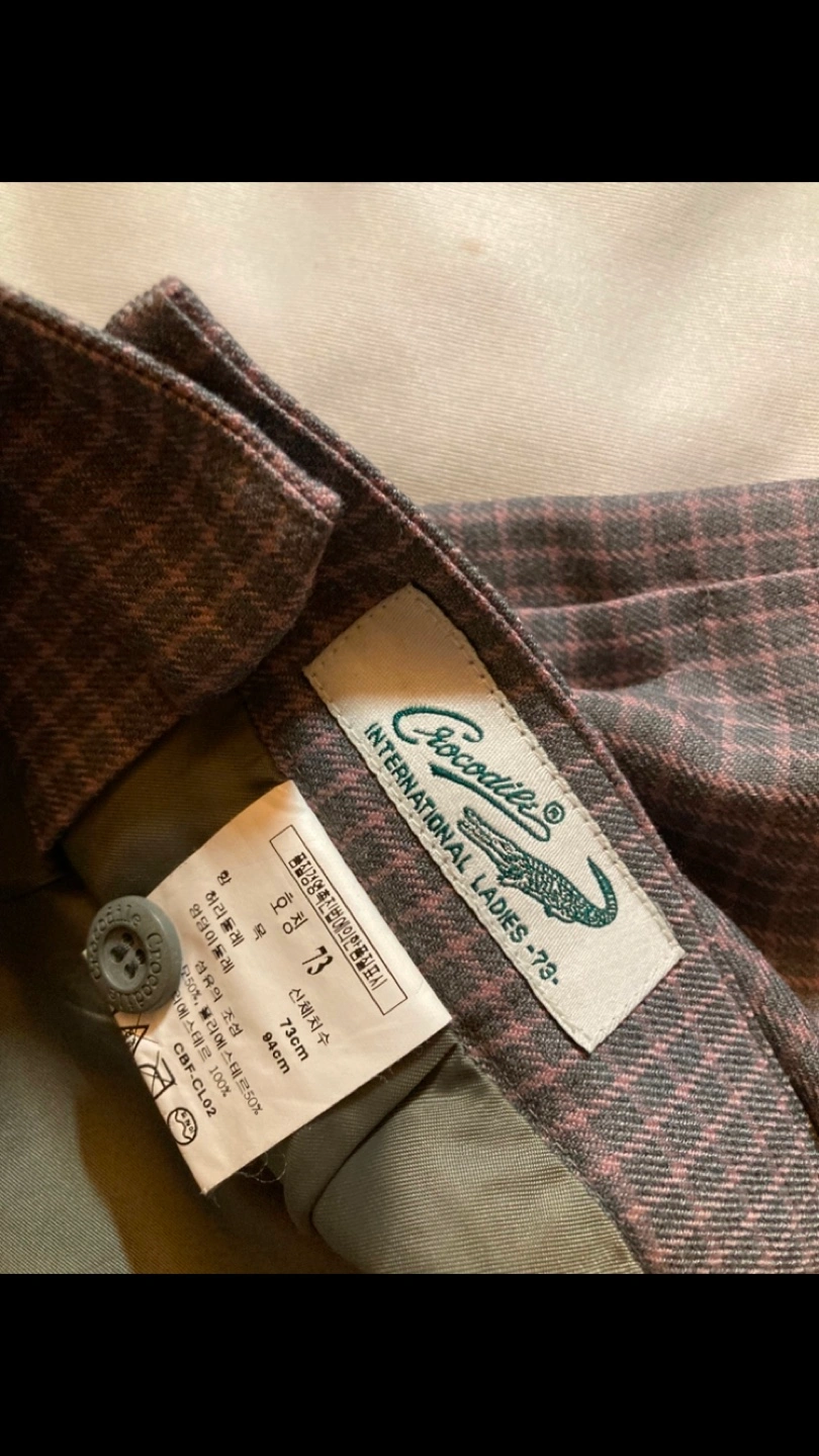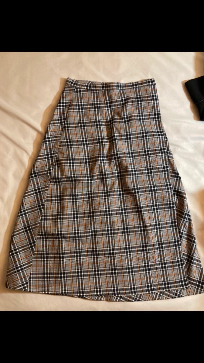 - Check pattern fabric skirt (24-26 in, has buttons to adjust)