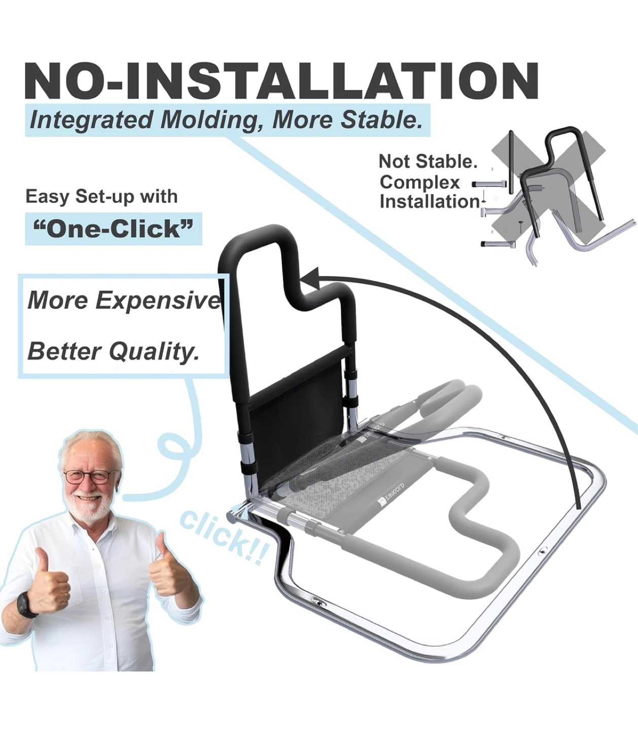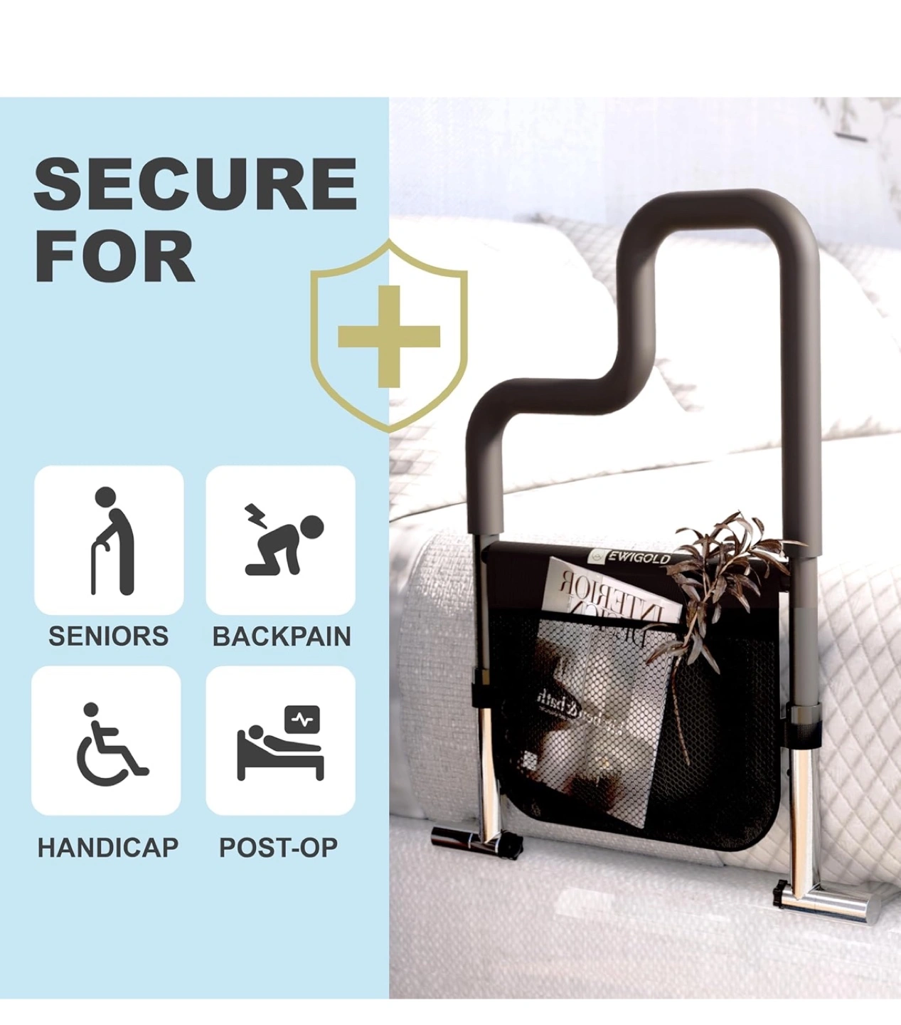 Easy one-click setup. Adjustable height, fits all bed sizes. Sturdy, secure assist handle. Great for seniors, those with back pain, handicaps, or post-op recovery. Includes convenient storage pocket.
