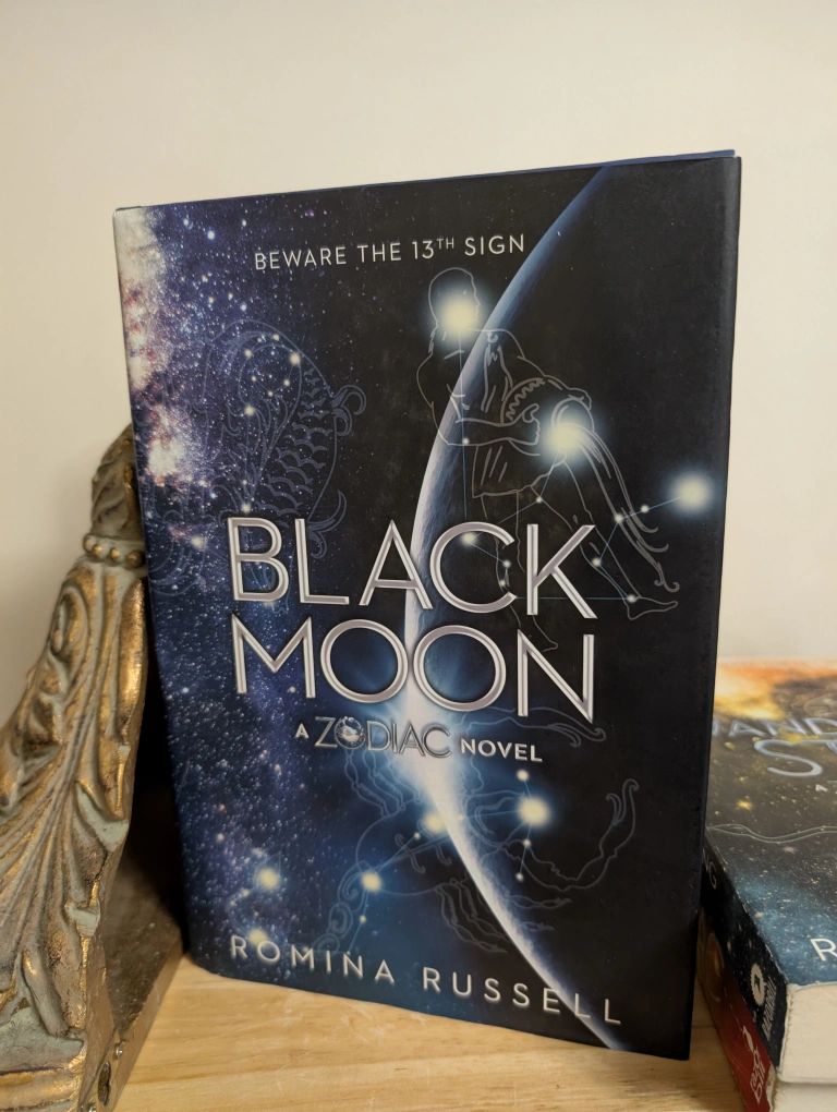 Four books in the Zodiac series by Romina Russell. Includes *Zodiac*, *Black Moon*, *Wandering Star*, and *Thirteen Rising*. 2 x Paperback novels, 2 x Hardcover novels. Good condition, the first book is more worn as shown in photos. Romance Fantasy Young Adult Fiction Science Fiction Pick up by Keele and Rogers
