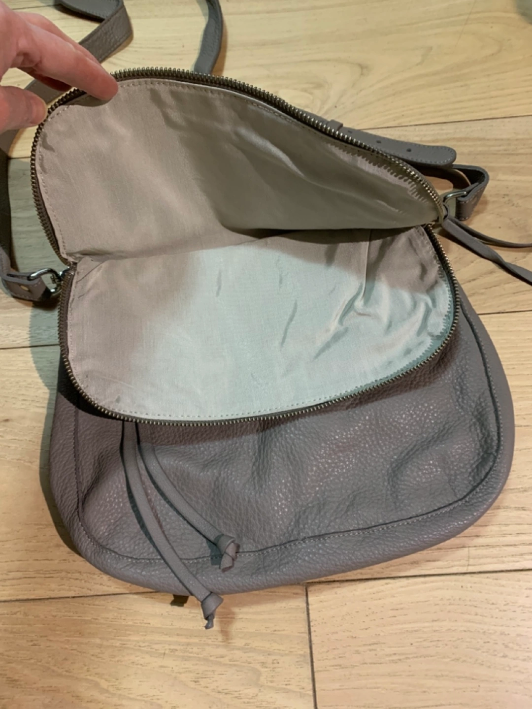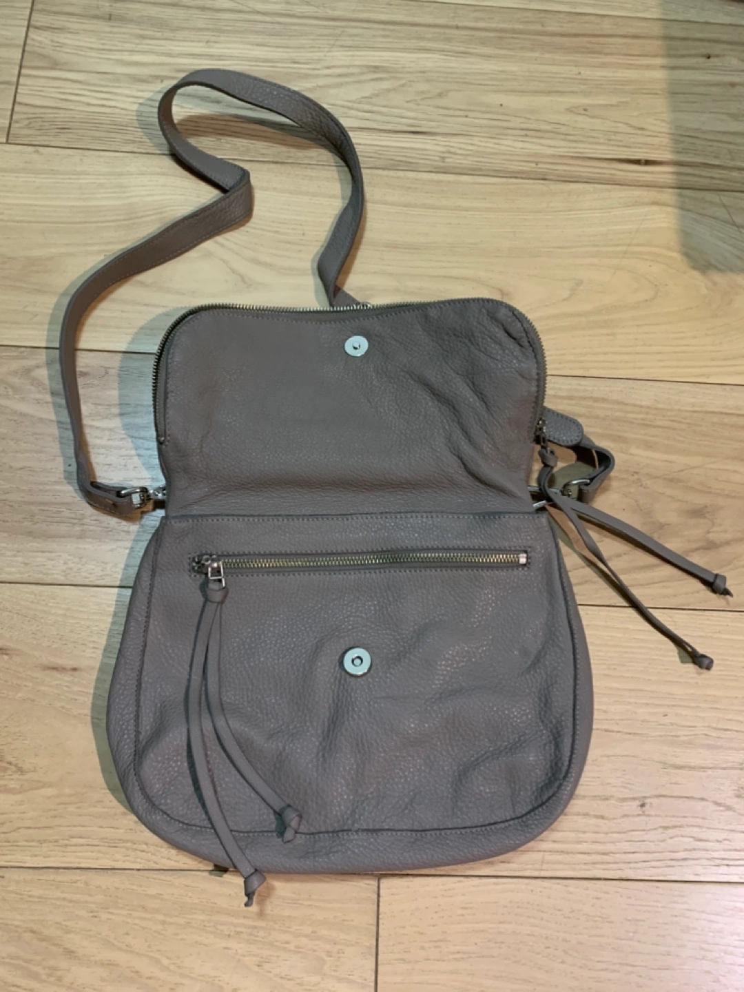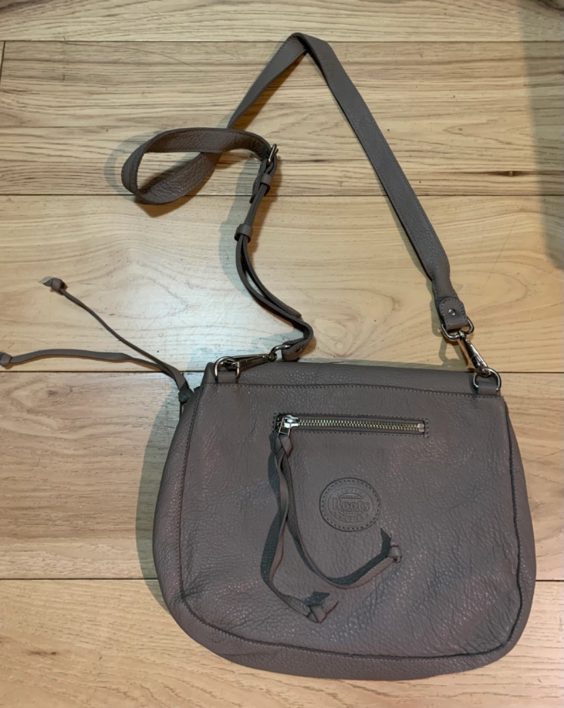 Roots light colour leather crossbody bag. Brand new never used. With price tag on of $268.00. Features a zip closure and adjustable strap. Also has an interior pocket with zipper.
