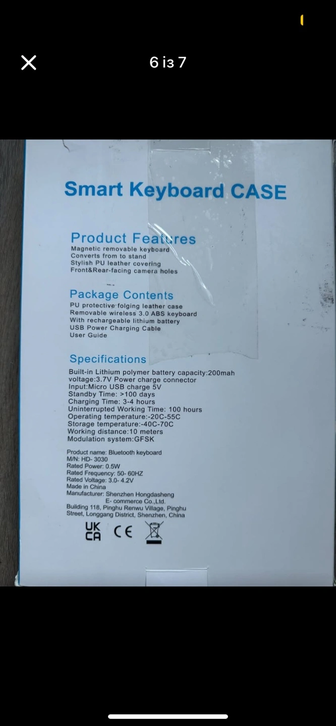 31iPad 9th 8th 7th Generation Keyboard Case with Mouse,iPad Air 3/iPad Pro 10.5 Detachable Bluetooth Keyboard Pencil Holder Slim Leather Smart Cover (Blue) ====================== New product. Open box. We can meet at the corner of Royal York Rd and Queensway, Etobicoke. The first to arrive, the first to buy ====================== Smart Keyboard CASE For Galaxy S8+/PLUS Galaxy Tab S7FE/S7+PLUS Т730/T970/X800 Specifications Built-in Lithium polymer battery capacity:200mah voltage:3.7V Power charge connector Input:Micro USB charge 5V Standby Time: >100 days Charging Time: 3-4 hours Uninterrupted Working Time: 100 hours Operating temperature:-20C-55C Storage temperature:-40C-70C Working distance:10 meters Modulation system:GFSK Product name: Bluetooth keyboard M/N: HD- 3030 Rated Power: 0.5W Rated Frequency: 50- 60HZ Rated Voltage: 3.0-4.2V Product Features Magnetic removable keyboard Converts from to stand Stylish PU leather covering Front&Rear-facing camera holes Package Contents PU protective folging leather case Removable wireless 3.0 ABS keyboard With rechargeable lithium battery USB Power Charging Cable User Guide ============ 9