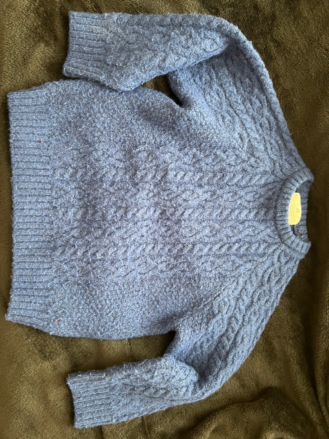 Cozy blue cable knit sweater. Long sleeves. Good condition. Size 120.