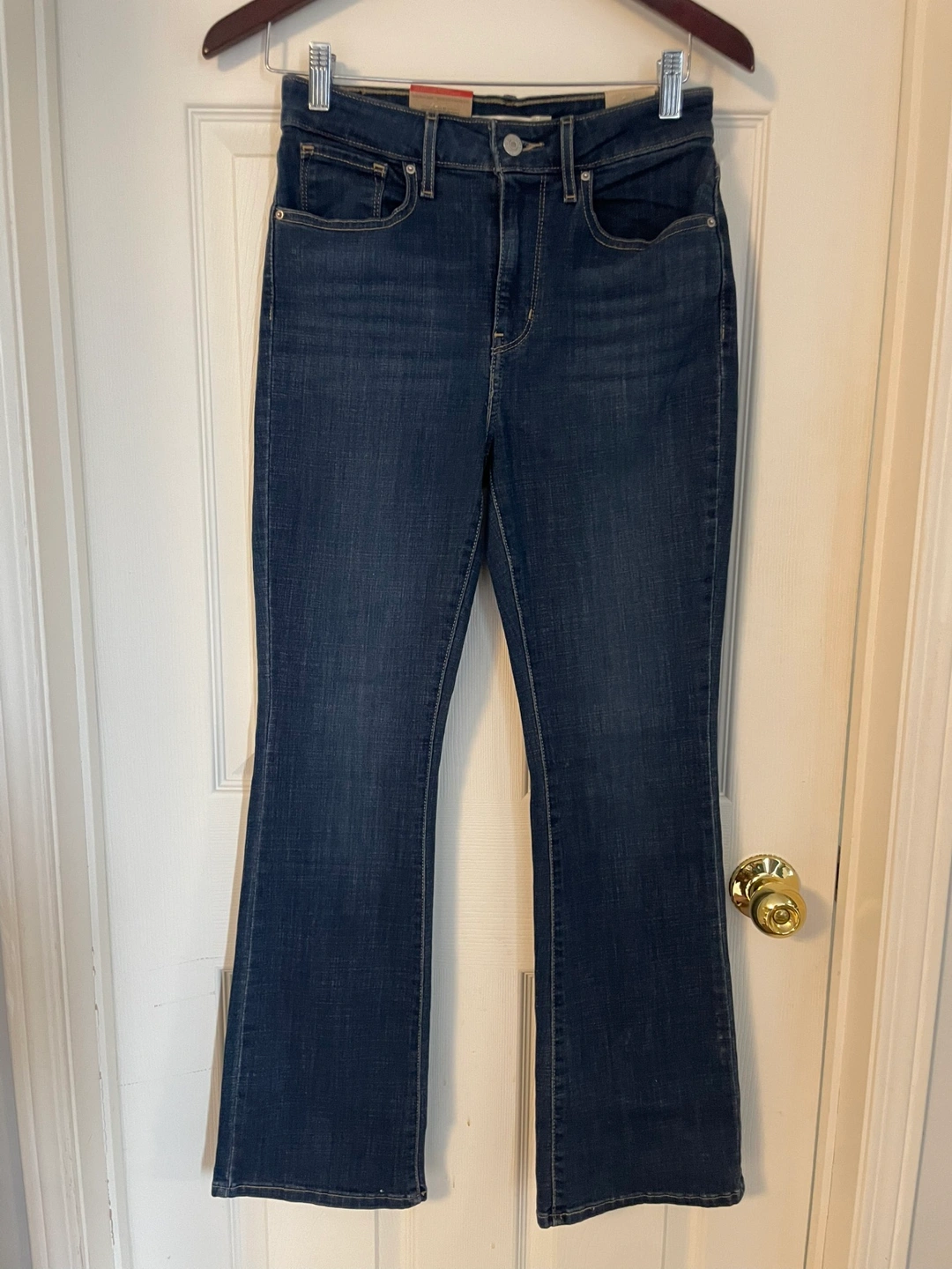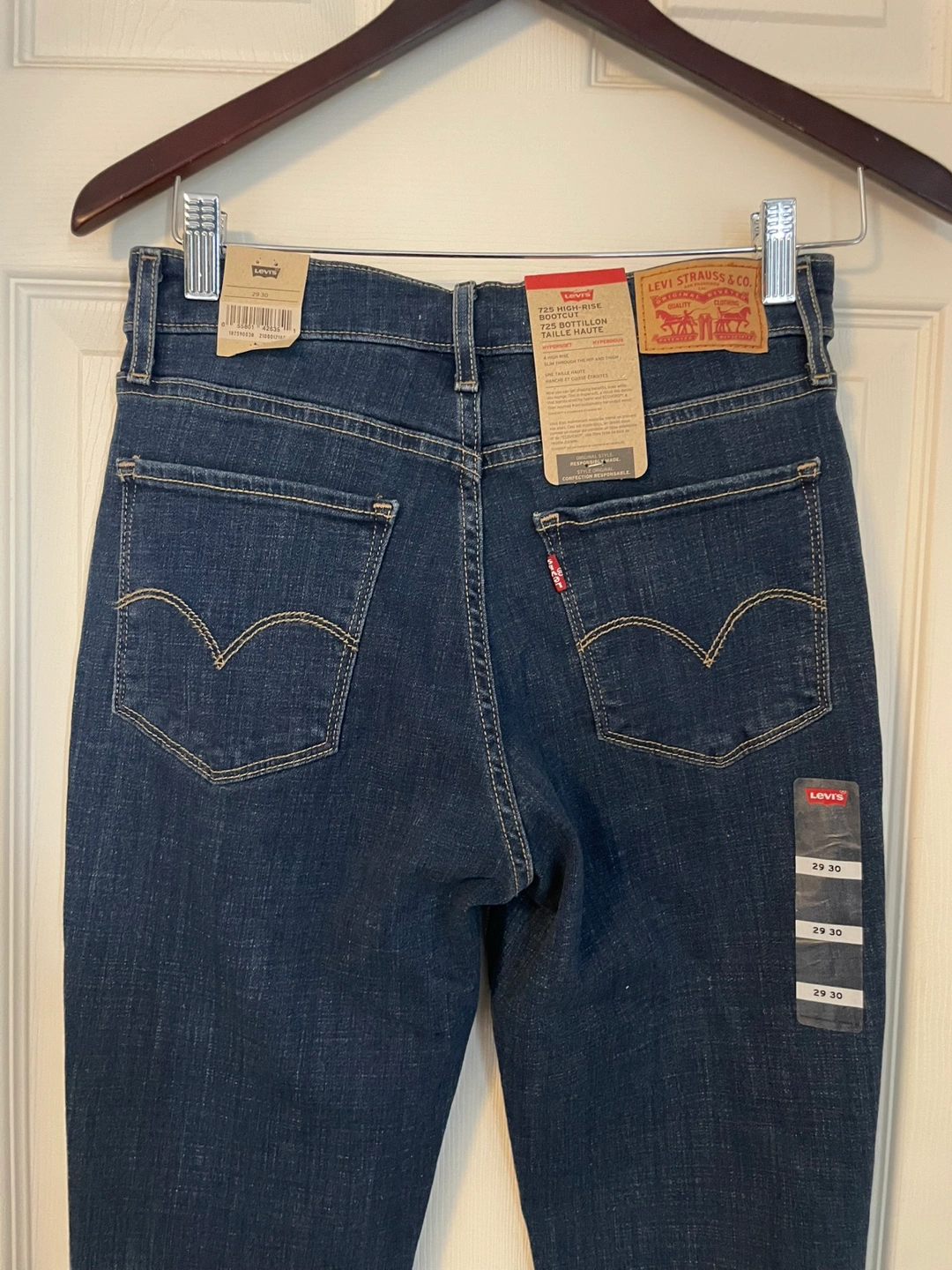 Women's Levi's 725 High-Rise Bootcut jeans. Size 29x30. Medium Dark wash denim.