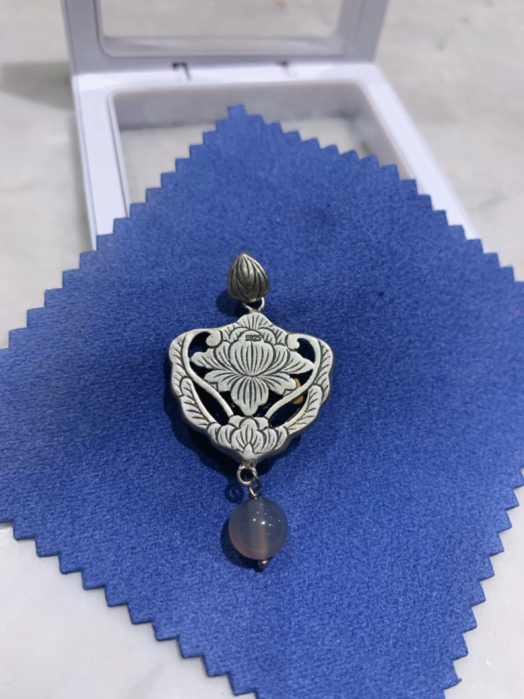 β¨ Brand New Double-Sided Sterling Silver Pendant with Natural Stone β¨ π Description: β’ Material: Sterling silver (925) with an intricately carved floral design β’ Stone: Natural gemstone (possibly agate or jade) with a smooth, polished surface β’ Design: β Double-sided pendant β Two beautiful floral patterns on each side β High-quality craftsmanship with vintage-style detailing β Elegant and versatile β can be paired with different necklace chains β Unique, timeless design, perfect for daily wear or special occasions π¦ Condition: β’ Brand new, never worn β’ Comes with a jewelry cleaning cloth and protective case π A stunning addition to any jewelry collection or a thoughtful gift!