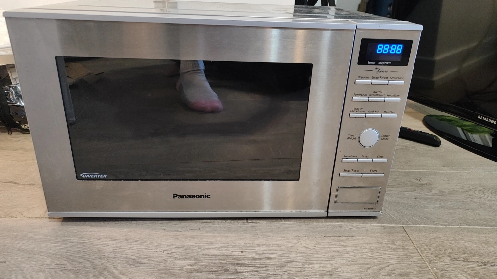 Stainless steel microwave. Inverter technology. Multiple cooking options. Sensor reheat and cook functions. Pre-programmed settings. Good condition.