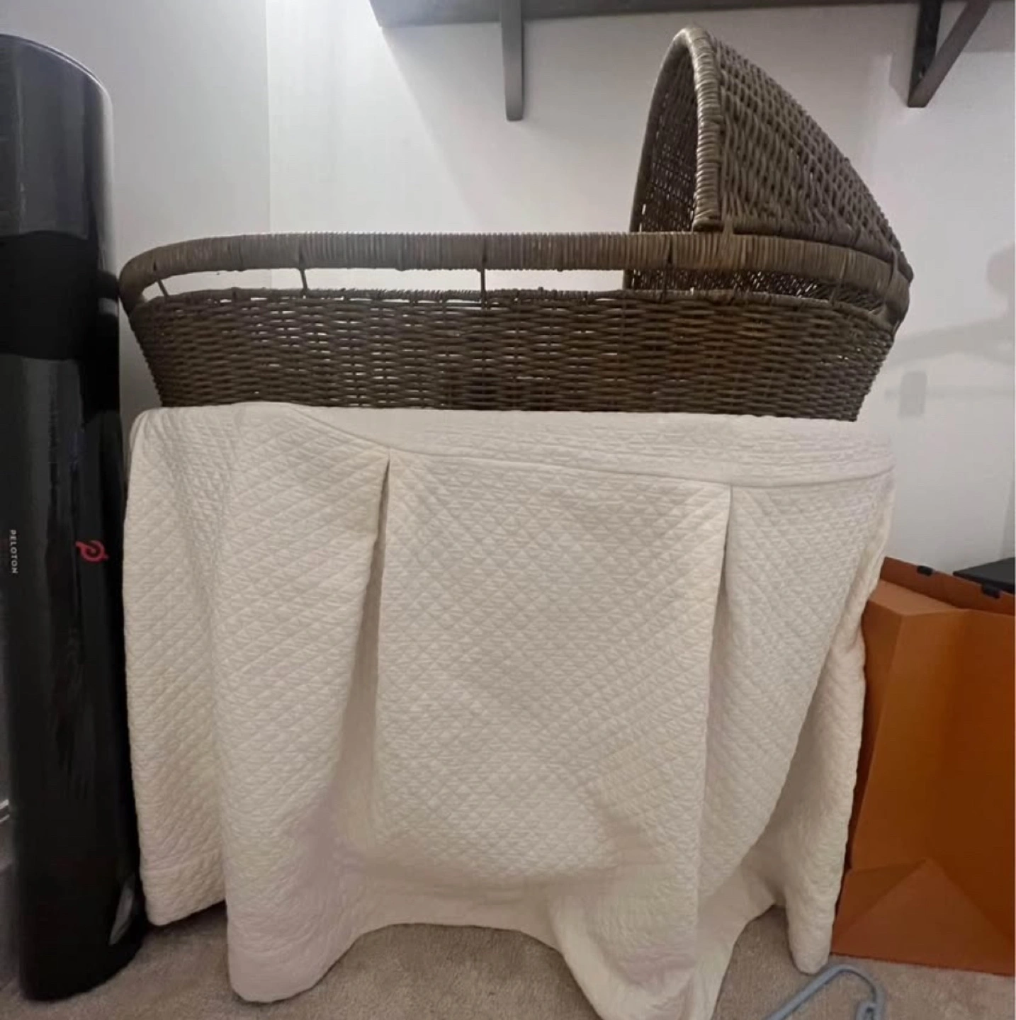 Beautiful wicker moses basket. Includes a stand and a cream-coloured skirt. Gently used, excellent condition.