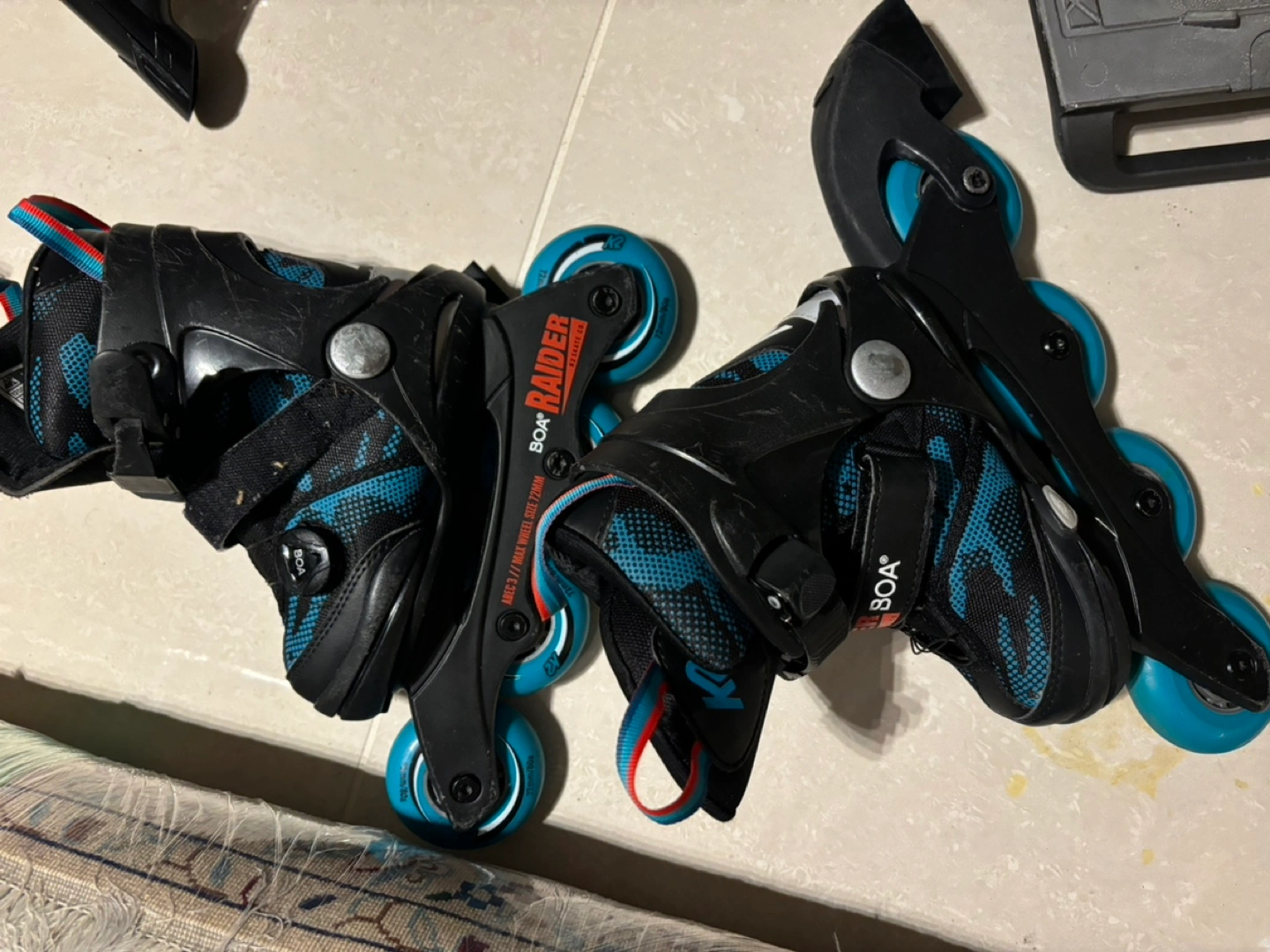 Used inline skates. Black and teal colour scheme. BOA closure system. Good condition. Size US 11/2, EUR 29-34, CM 17-20.5.