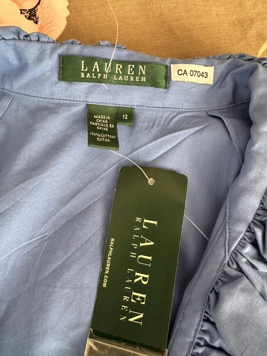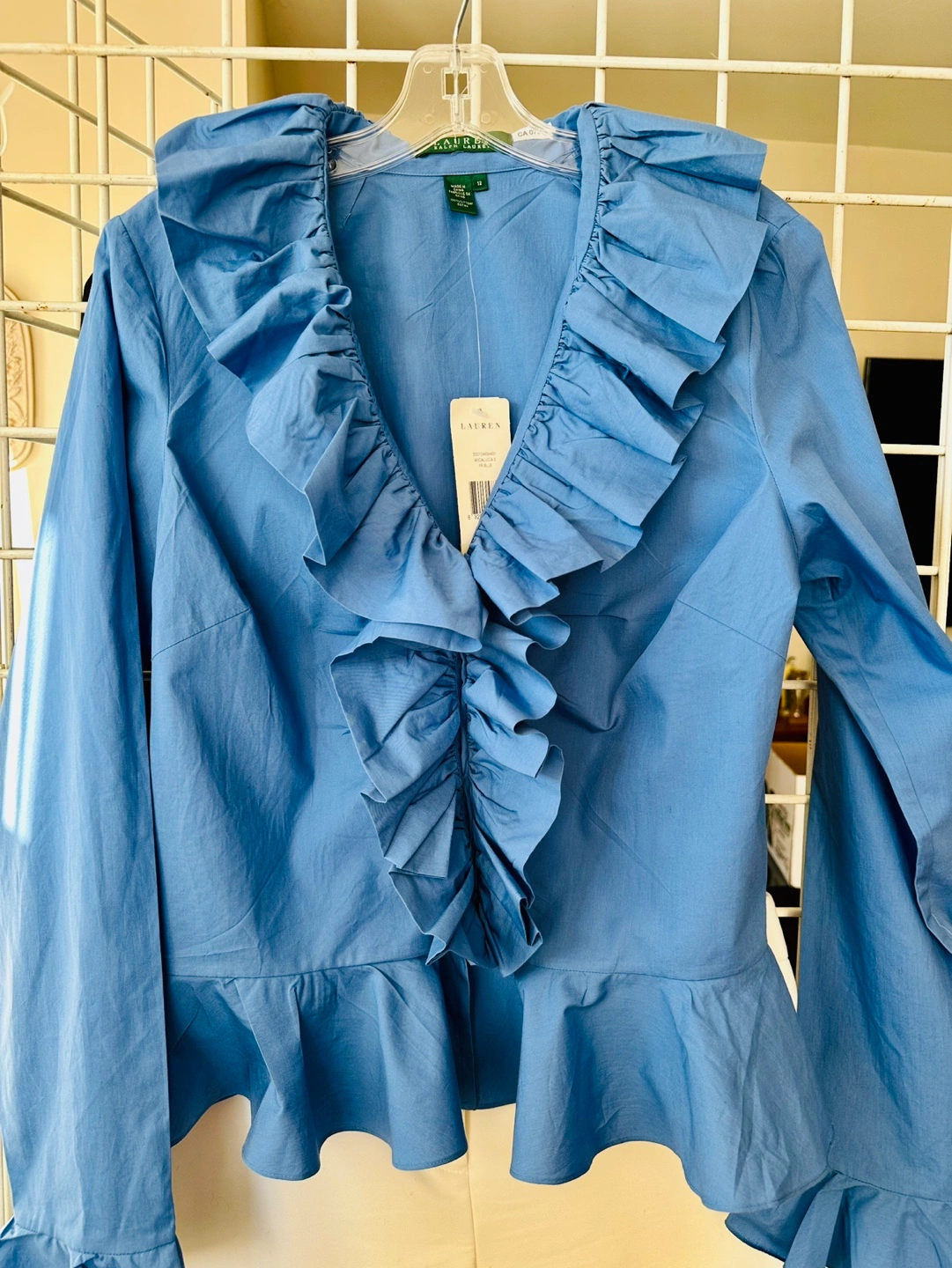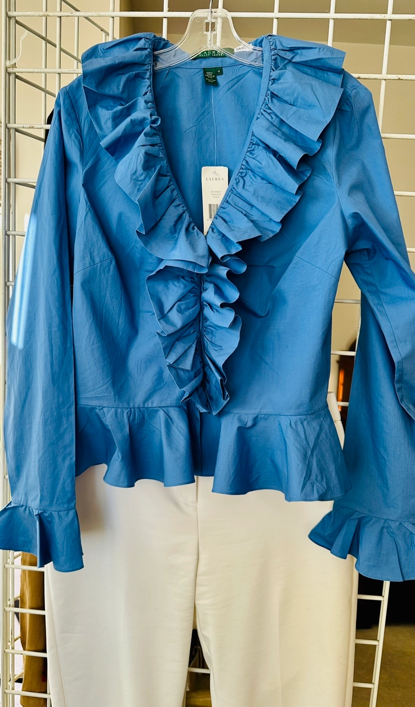 Lauren Ralph Lauren Blue Ruffle Blouse Size 12