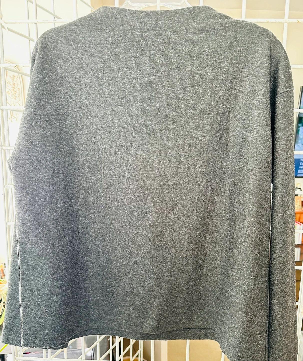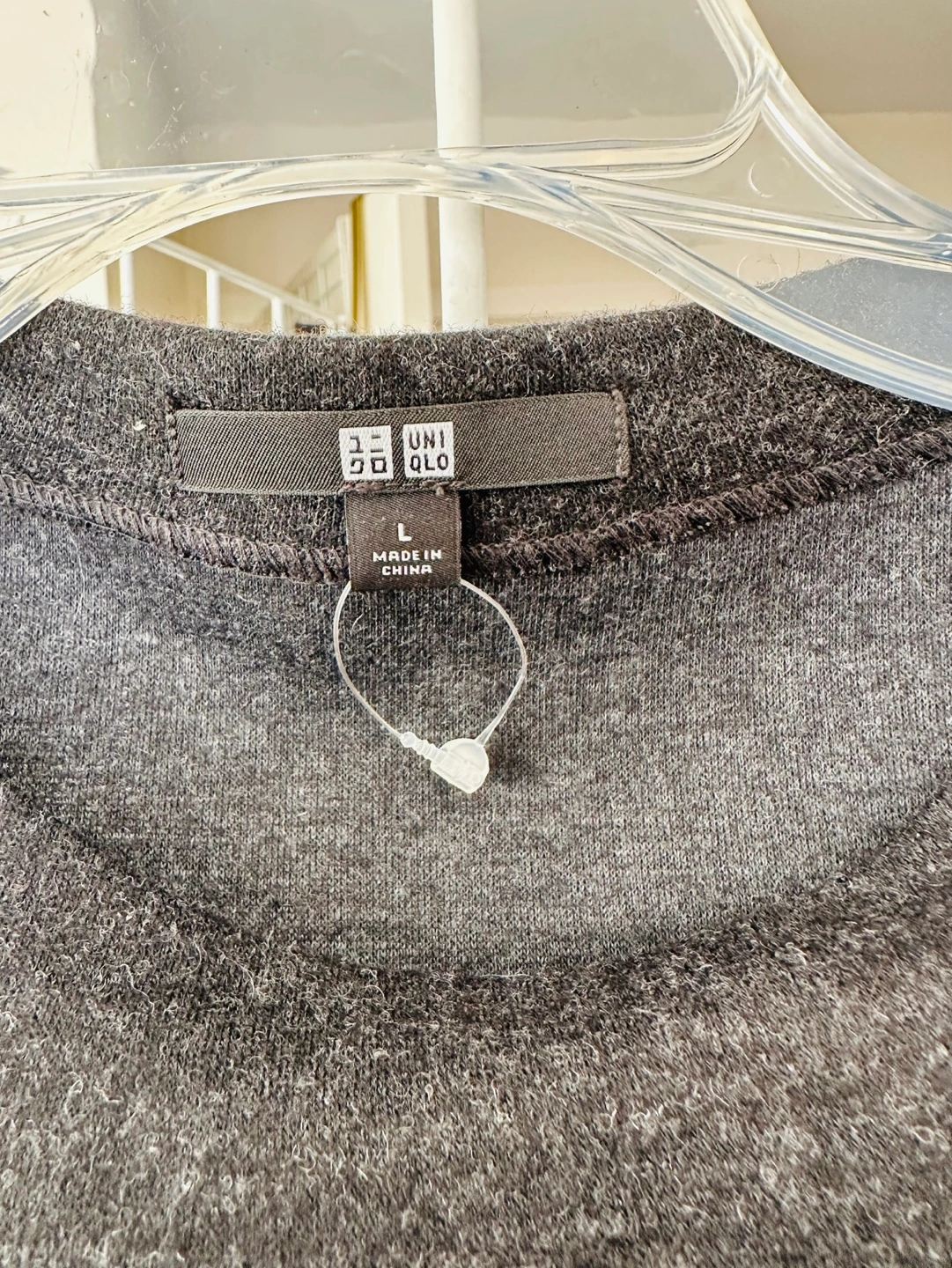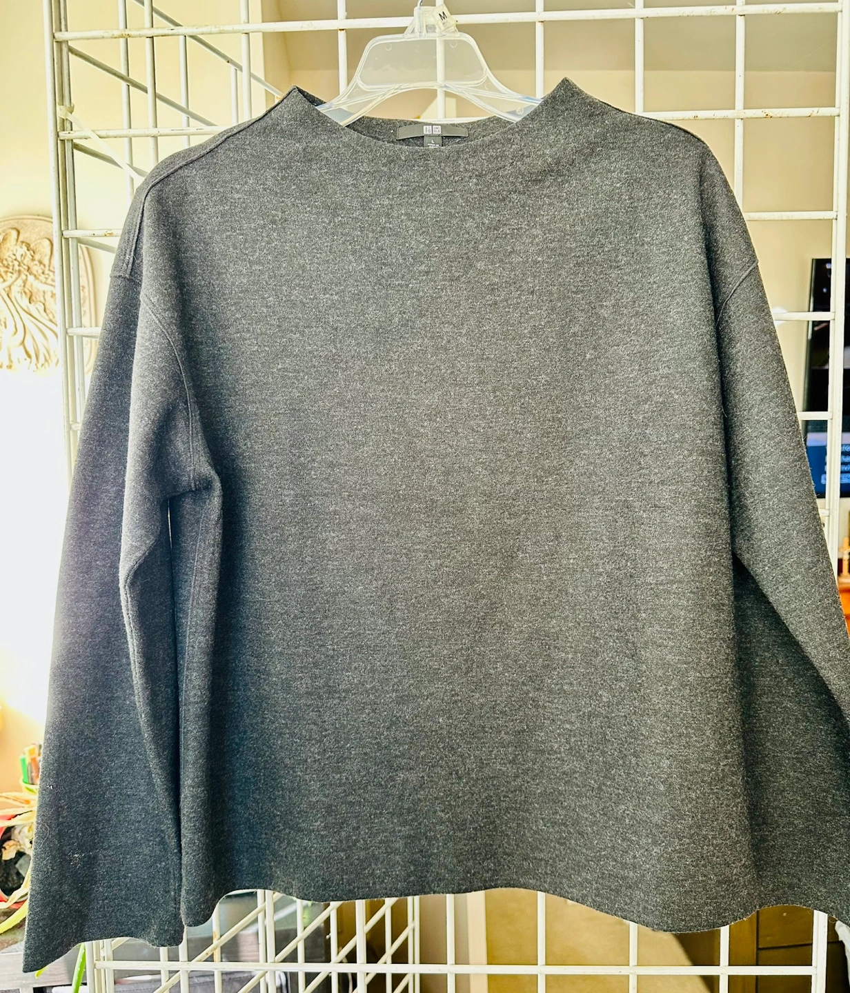 Women's UNIQLO mock neck long sleeve sweater. Size Large. Dark grey heather colour. Soft material. Relaxed fit.