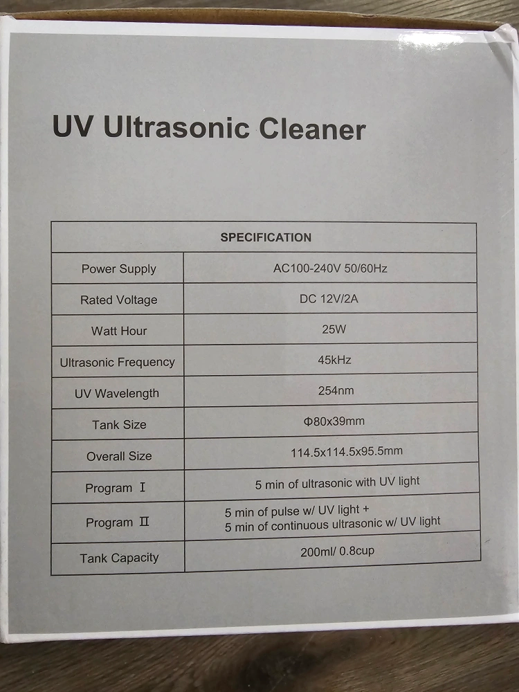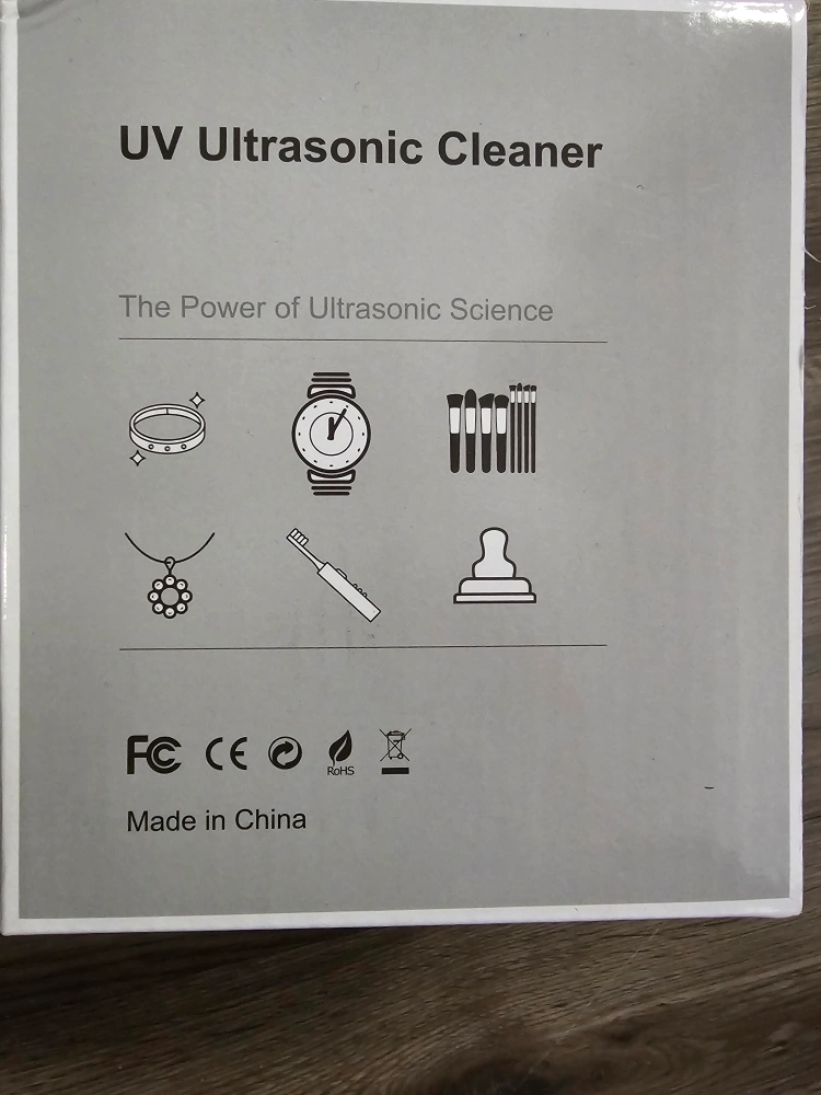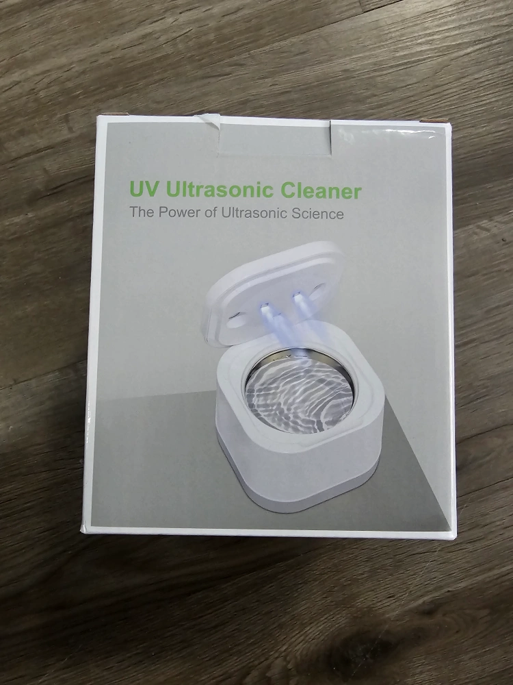 New UV Ultrasonic Cleaner. Cleans jewellery, dentures, aligners, and more. Includes power adapter. Made in China.