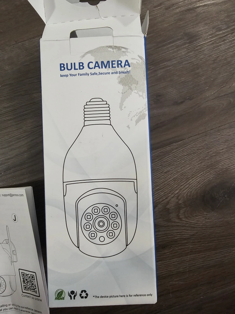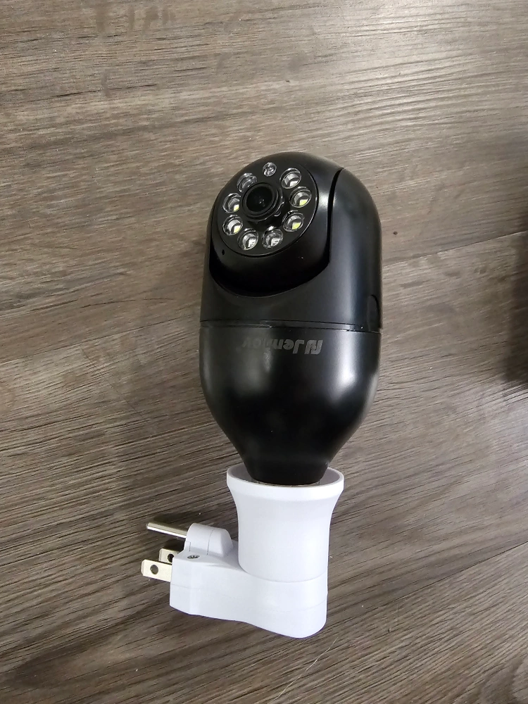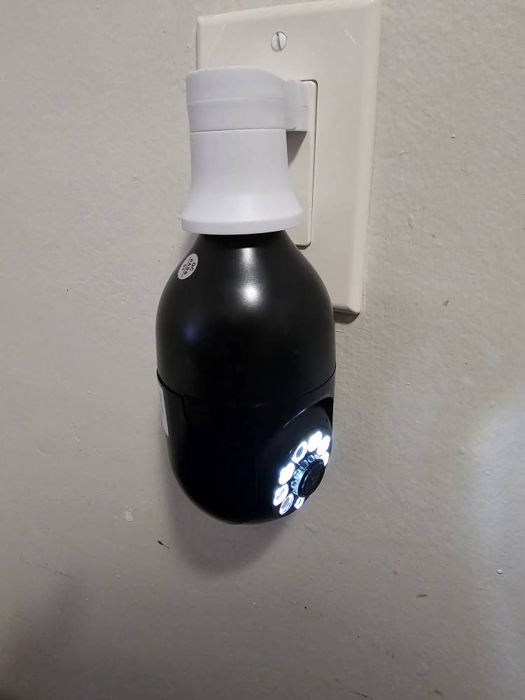 Wireless security camera. Looks like a lightbulb. Easy setup. Includes instructions. Great for home security.