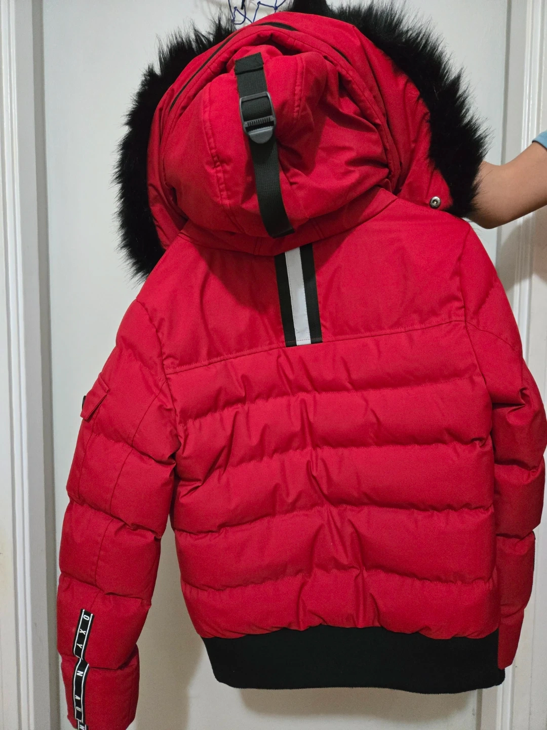 Selling a vibrant red Oxygen puffer jacket! It's in great shape and ready to keep you warm this winter. The jacket features a faux fur-trimmed hood and a stylish design. Perfect for those chilly Canadian days!