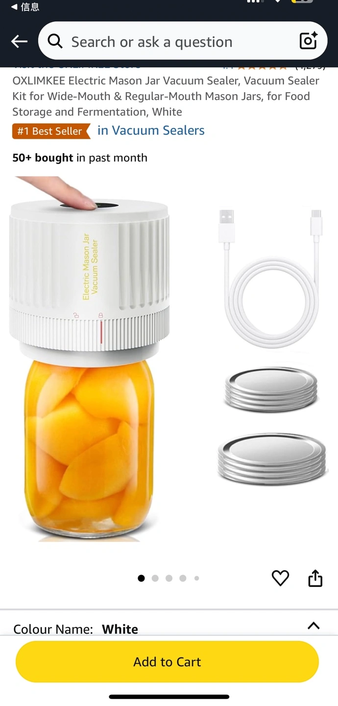 42Electric mason jar vacuum sealer. USB rechargeable. Includes extra lids. Great for preserving food.